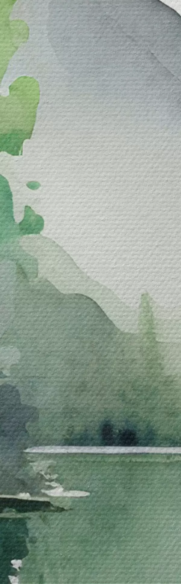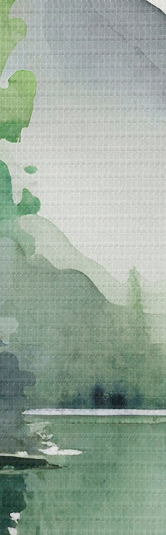 Picturi rotunde Peisaj acuarelă de lac și pădure, primăvară, verde natural culori moi r36503