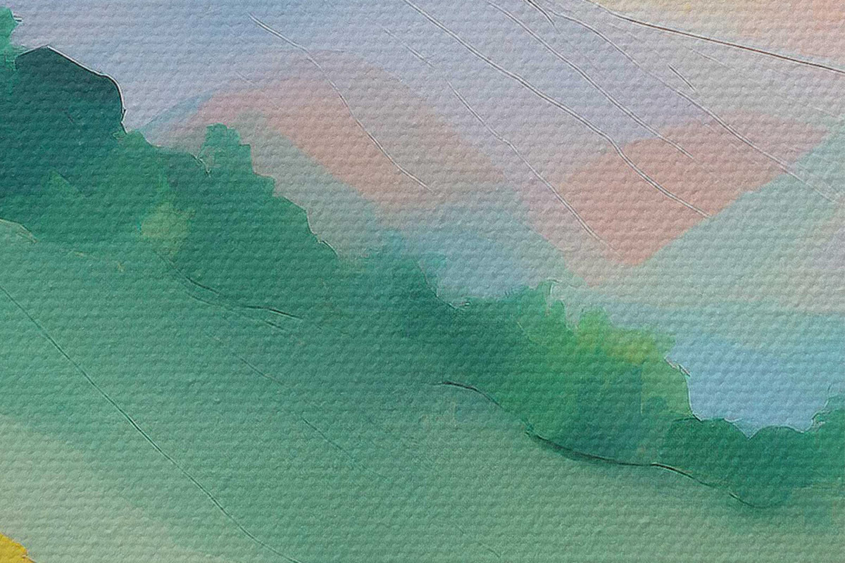 Țesătura fină a firelor de pe această pânză seamănă cu suprafața pânzelor artiștilor profesioniști.
