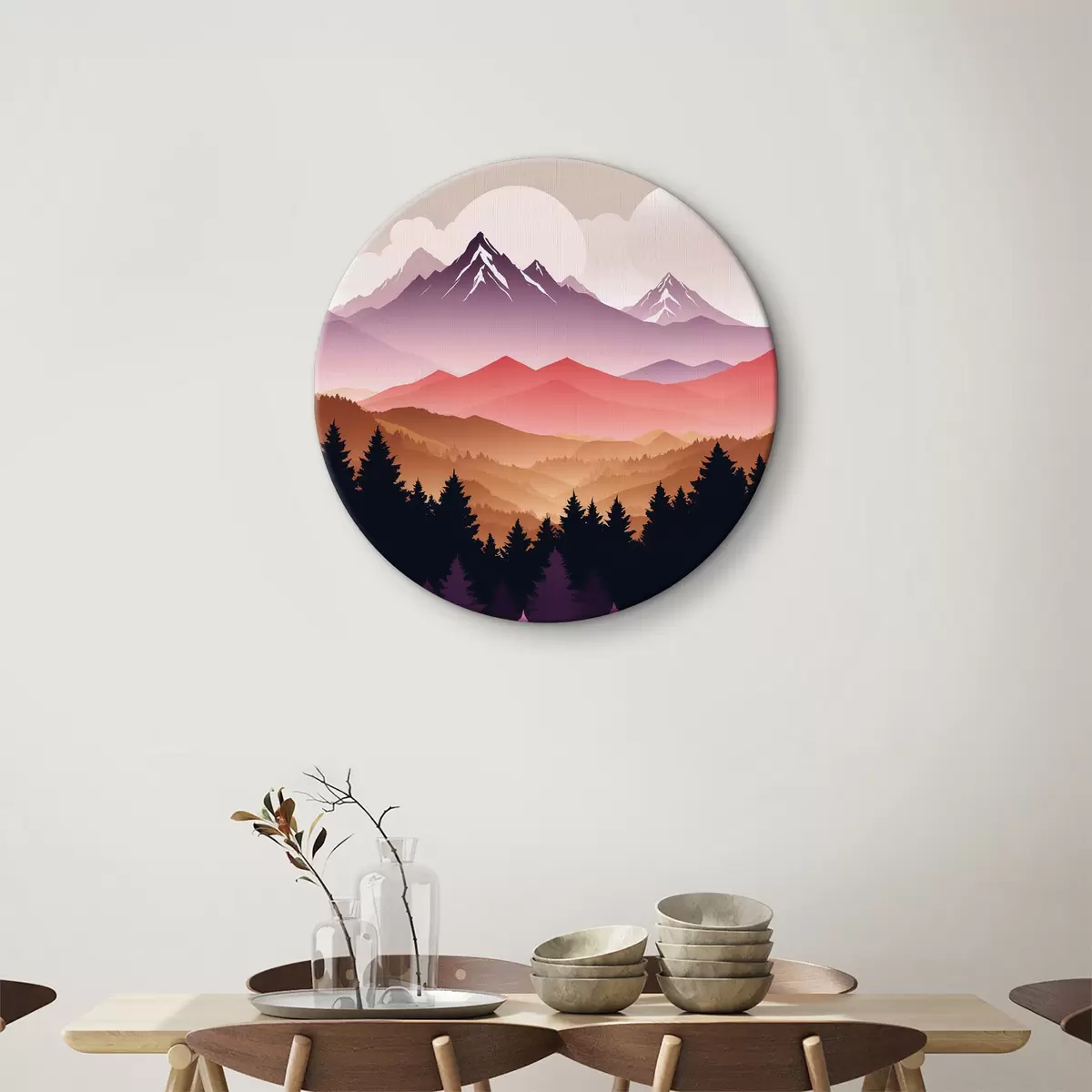 Picturi rotunde Apus de soare peste munții liniștiți Nr r36527