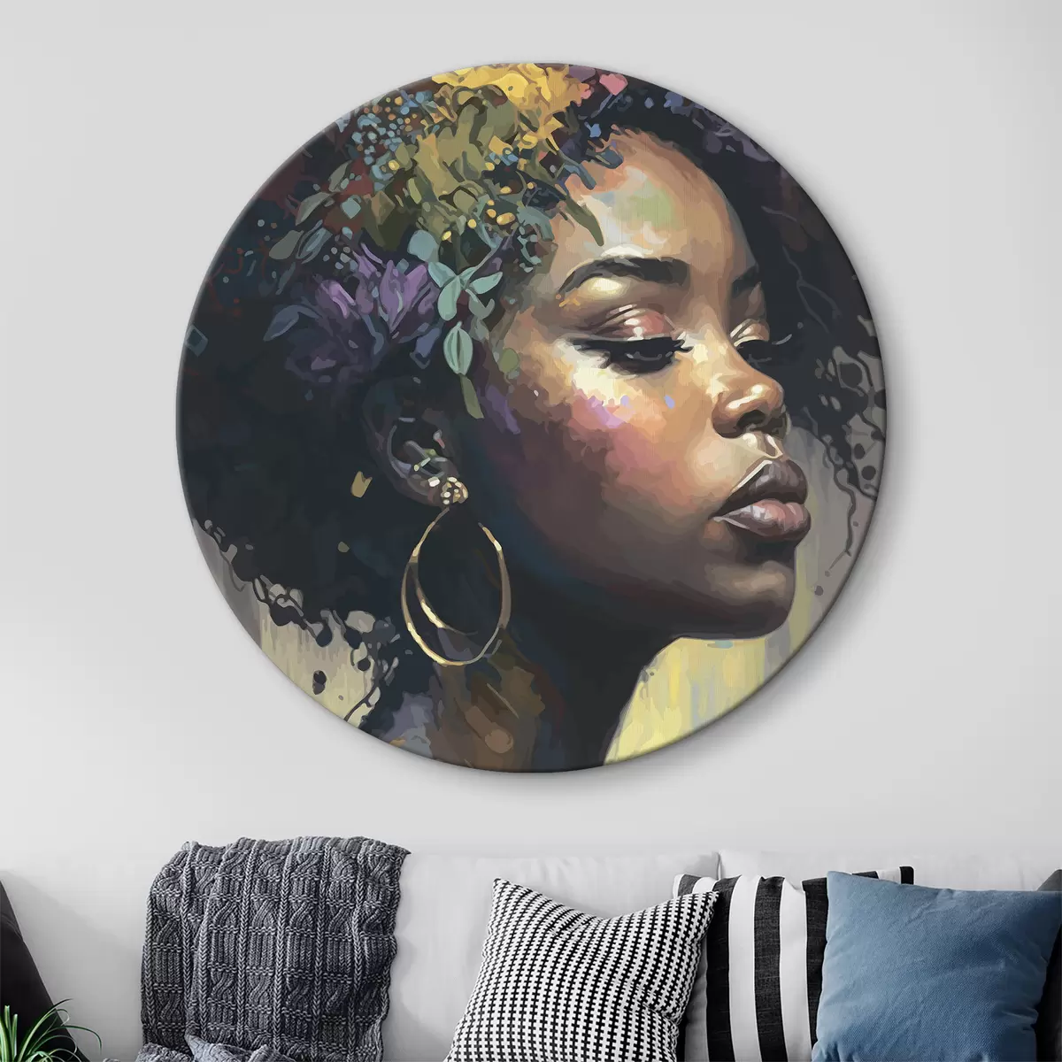 Picturi rotunde Femeie neagră frumoasă cu părul colorat Nr r36577