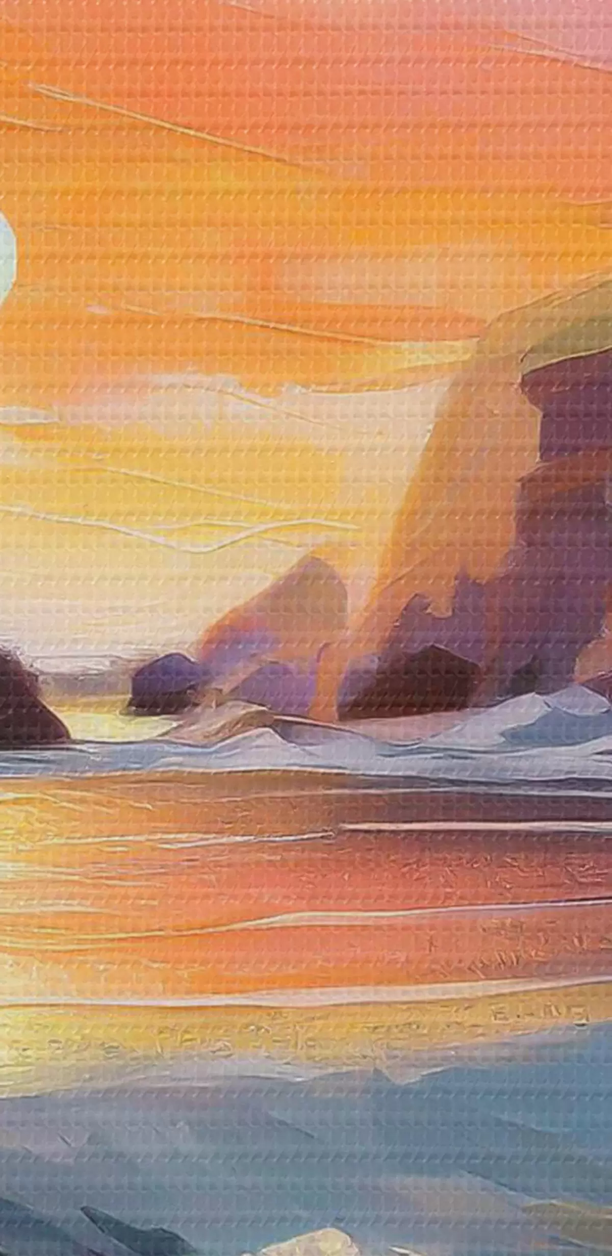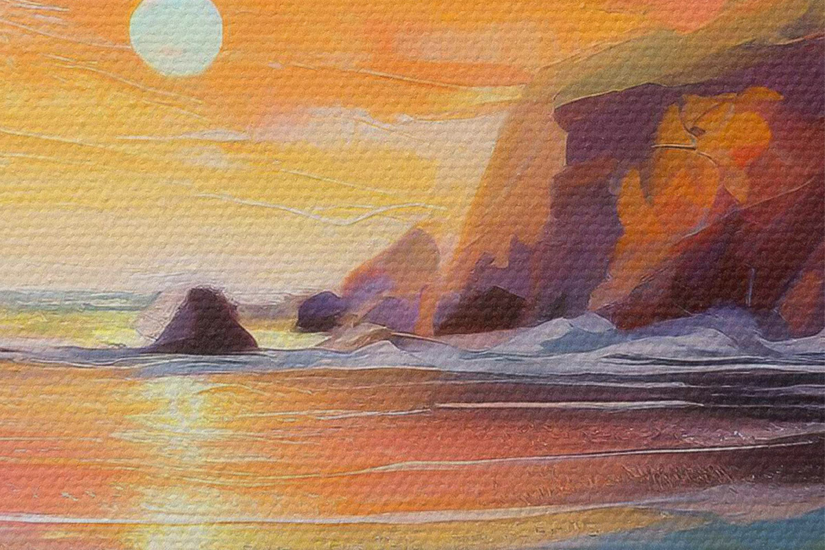 Picturi rotunde Răsărit de soare pe coastă, valuri marine, tușe de perie vii, acrilic Nr r36581
