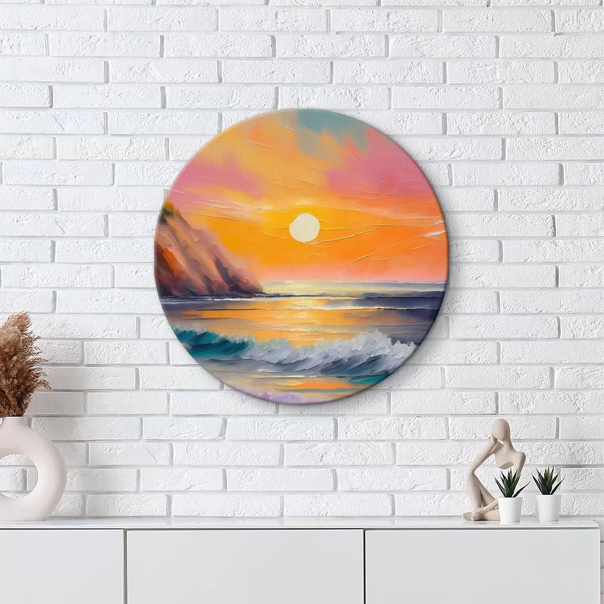 Picturi rotunde Culorile apusului de soare îmbrățișează valurile calme Nr r36582