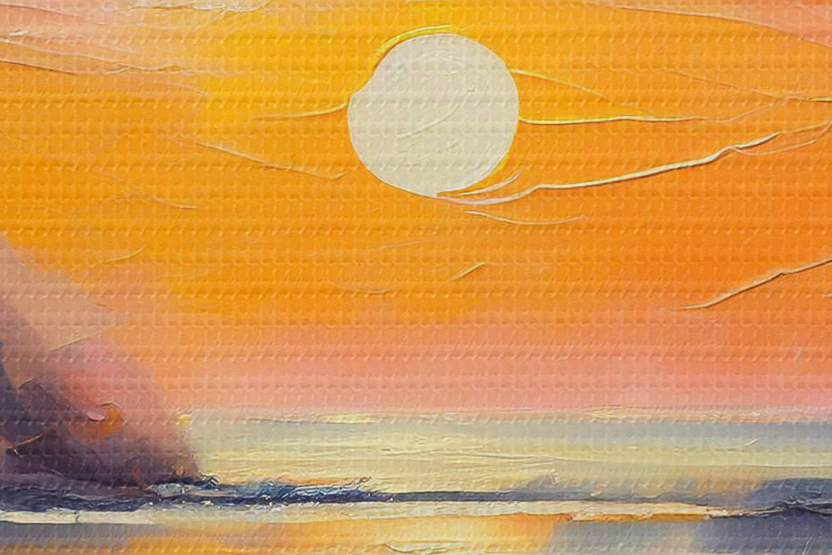 Țesătura fină a firelor de pe această pânză seamănă cu suprafața pânzelor artiștilor profesioniști.