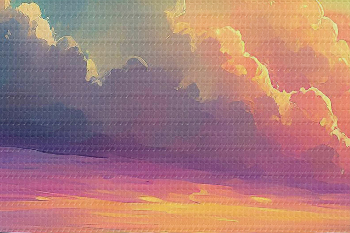 Țesătura fină a firelor de pe această pânză seamănă cu suprafața pânzelor artiștilor profesioniști.