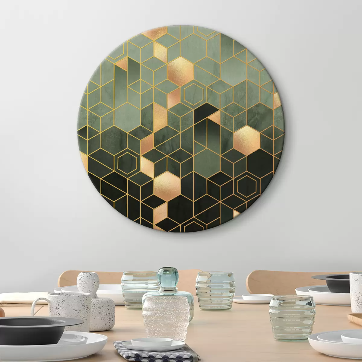 Picturi rotunde Eleganță geometrică de smarald și chihlimbar r36602v2