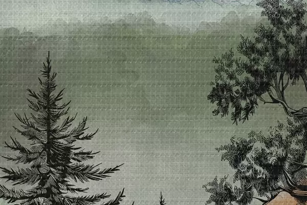 Picturi rotunde Acuarelă de munți și copaci r36604