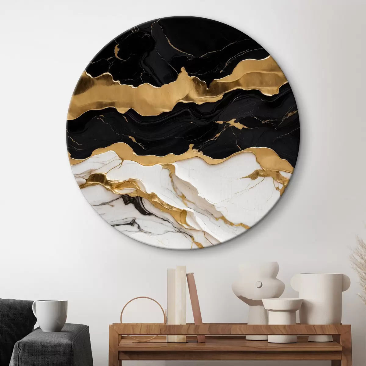 Picturi rotunde Abstracție alb-negru pe marmură cu o linie Nr r36636