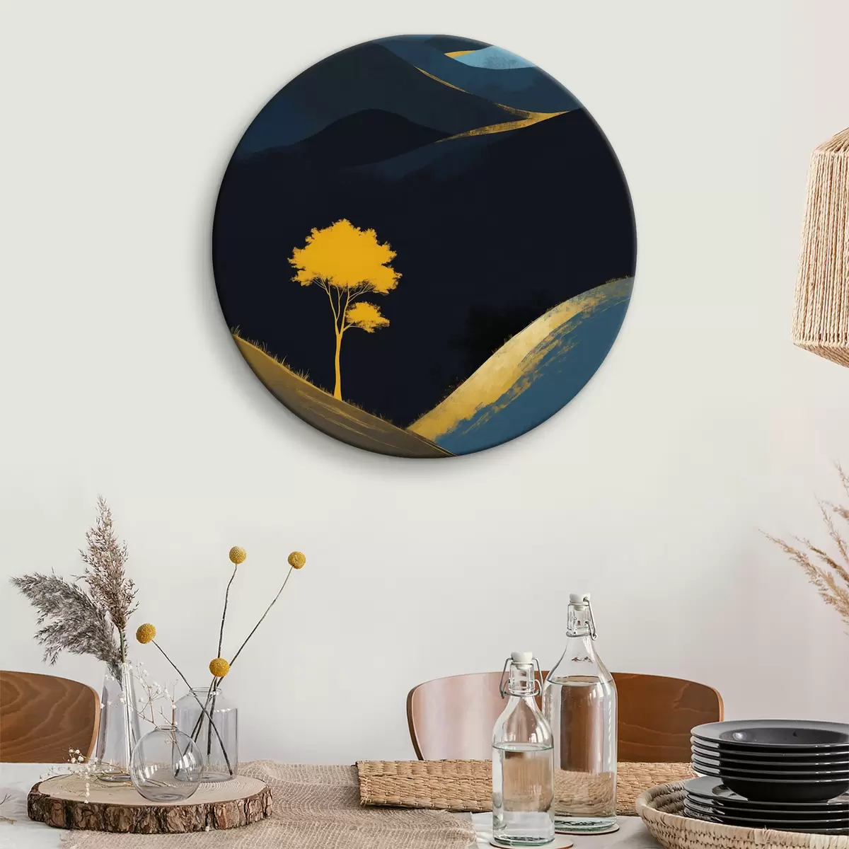 Picturi rotunde Un copac singuratic sub un cer de noapte fără stele Nr r36639