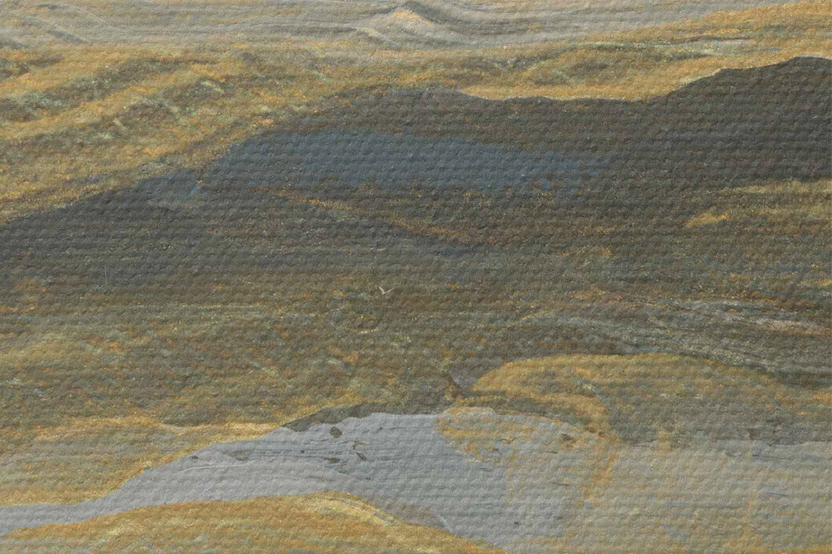 Țesătura fină a firelor de pe această pânză seamănă cu suprafața pânzelor artiștilor profesioniști.