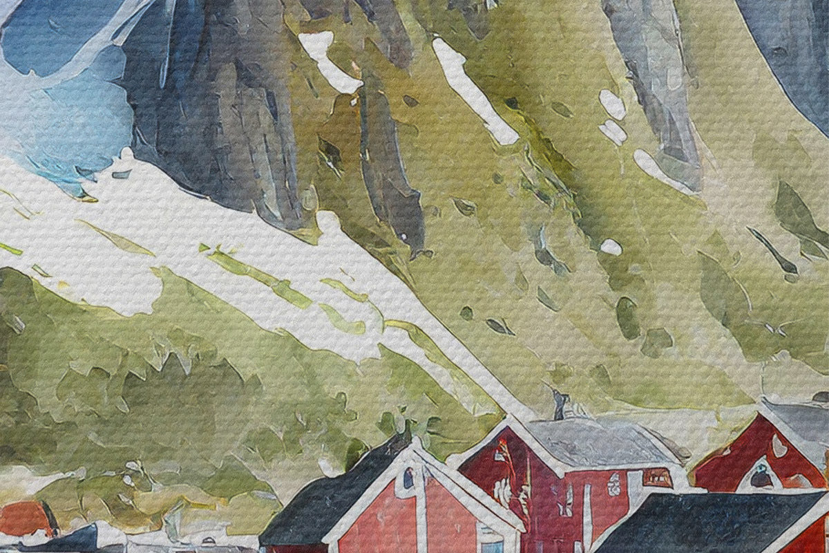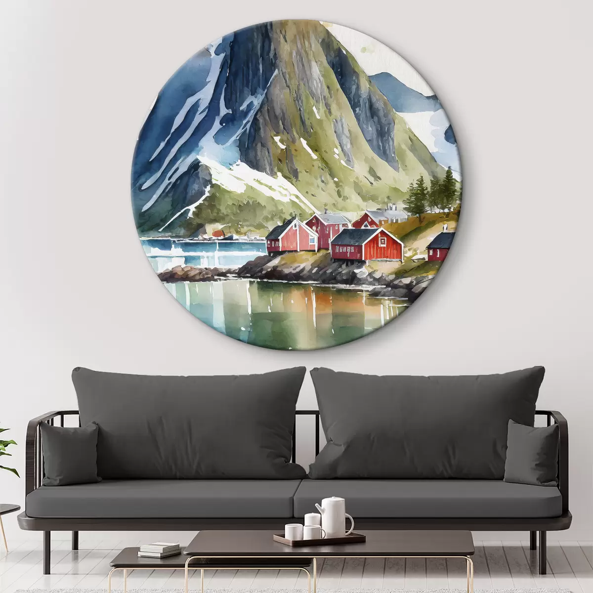 Picturi rotunde Norvegia, natura, acuarelă, Lofoten Nr r36685
