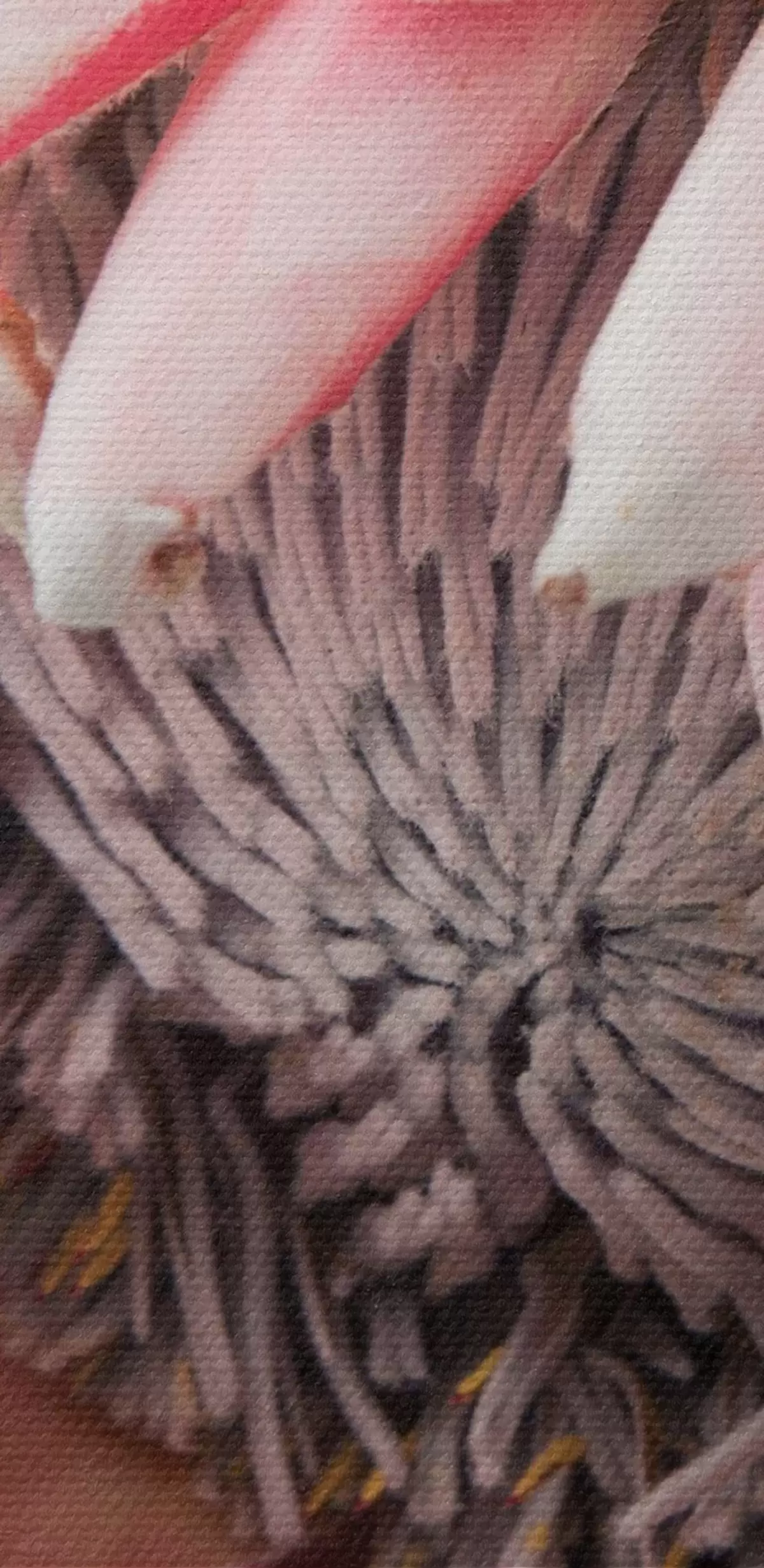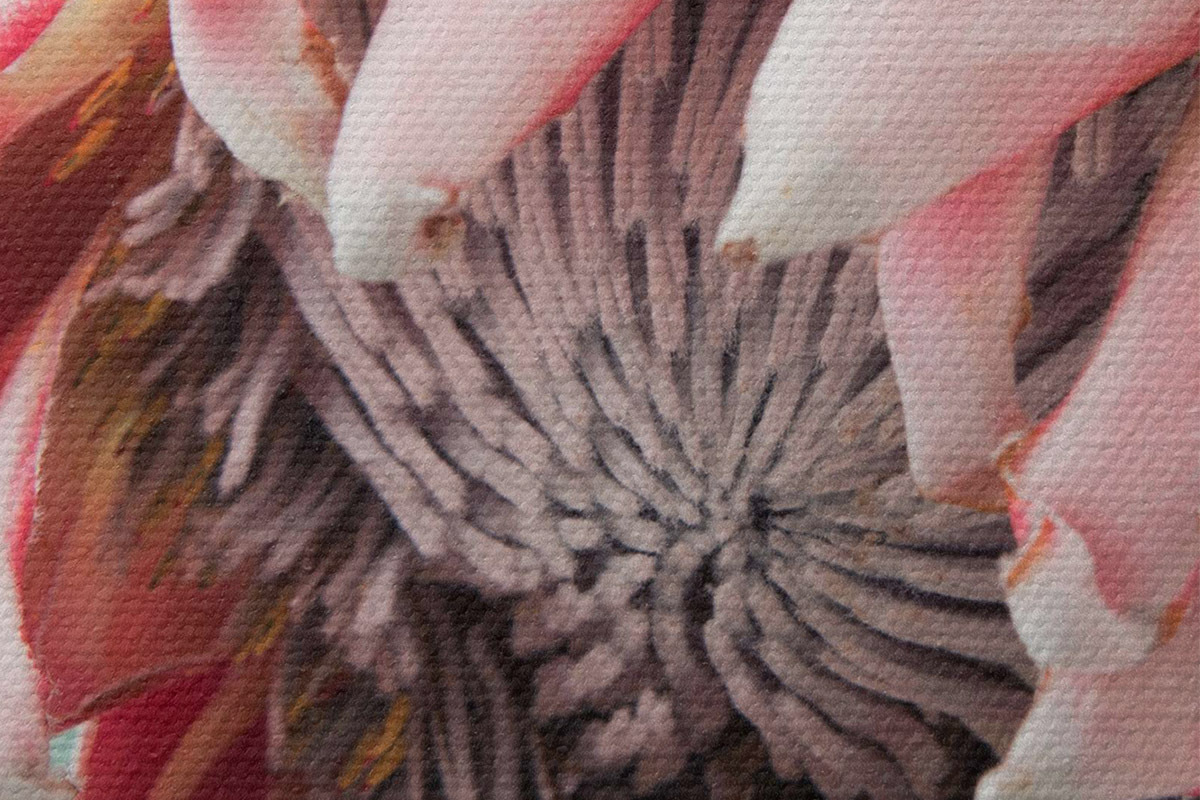 Țesătura fină a firelor de pe această pânză seamănă cu suprafața pânzelor artiștilor profesioniști.