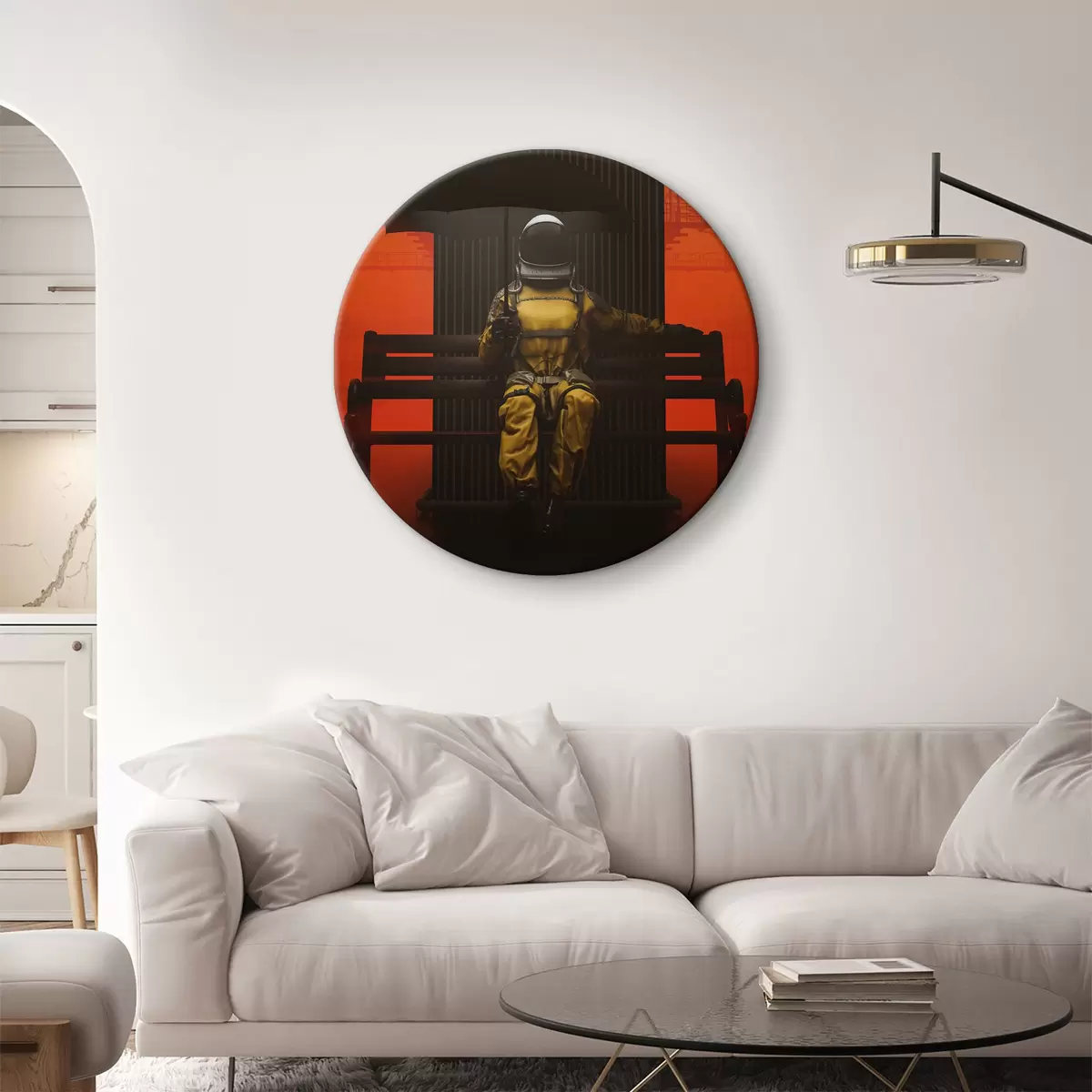 Picturi rotunde O persoană în costum stând pe o bancă cu o umbrelă Nr r36702