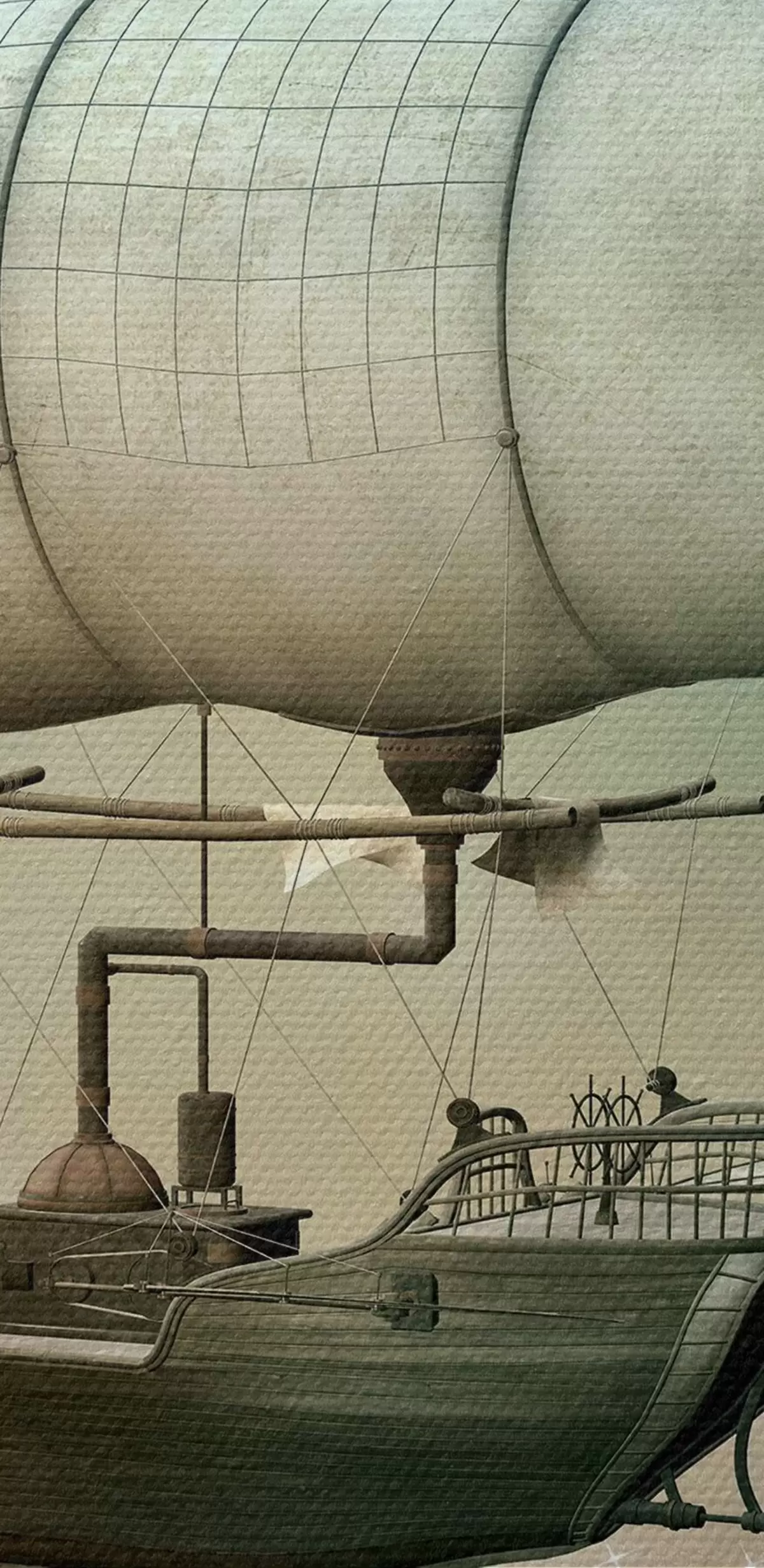 Picturi rotunde Dirijabil Steampunk pe cer Nr r36706