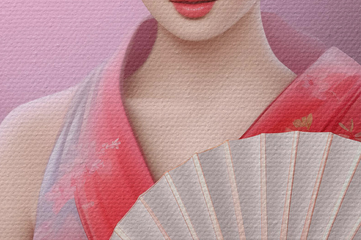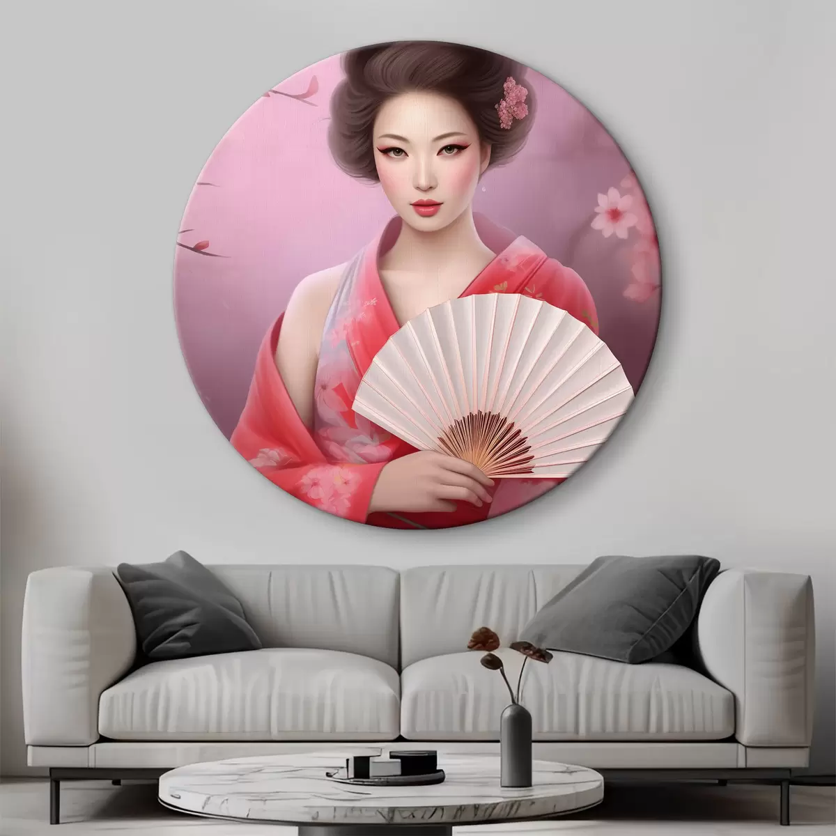 Picturi rotunde O femeie în kimono ținând în mână un evantai Nr r36804