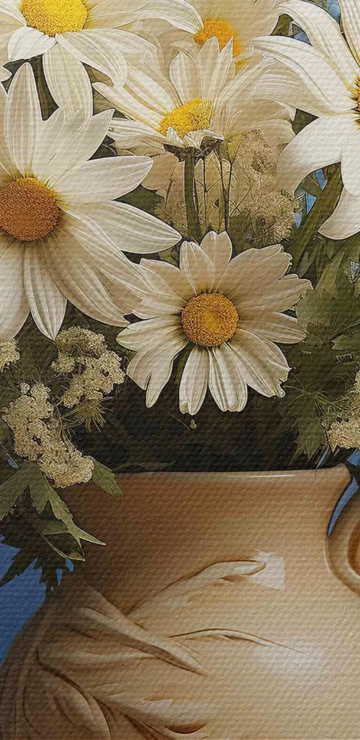 Picturi rotunde Un buchet minunat de margarete albe pe un fundal albastru Nr r36814