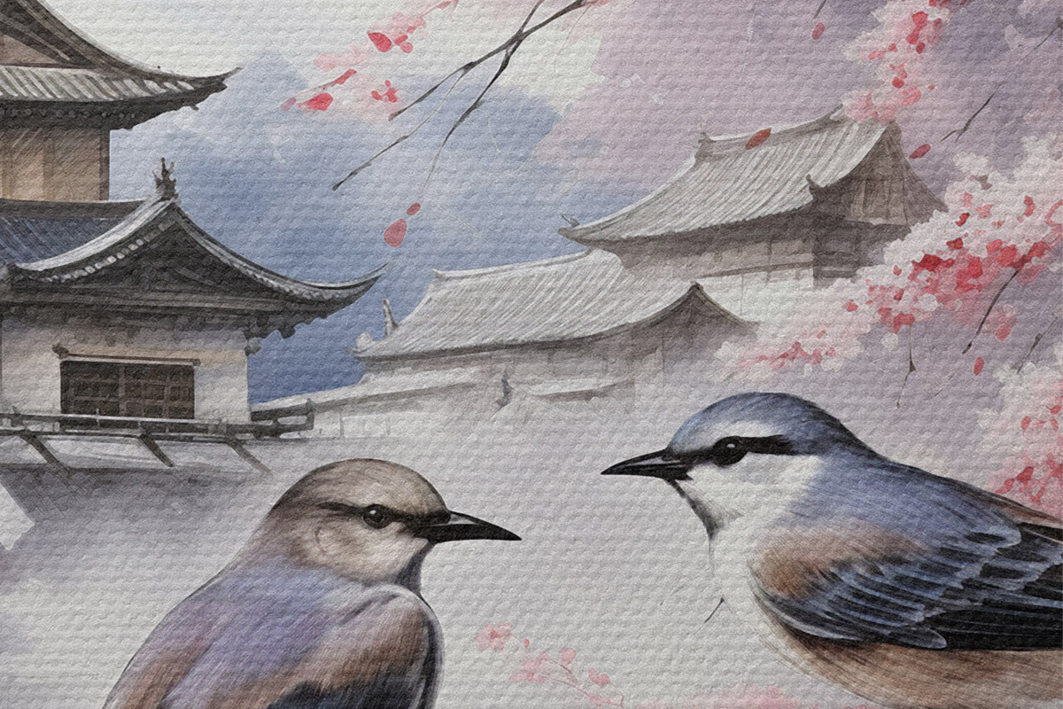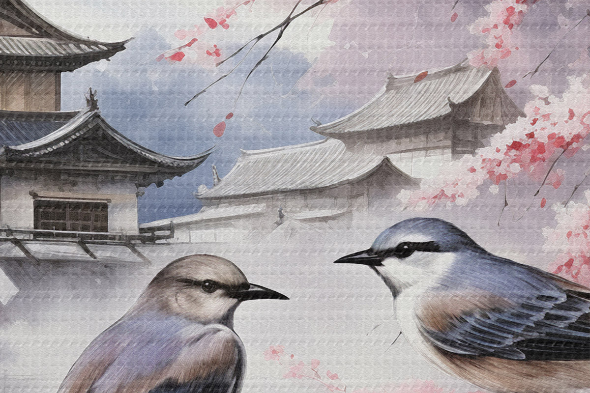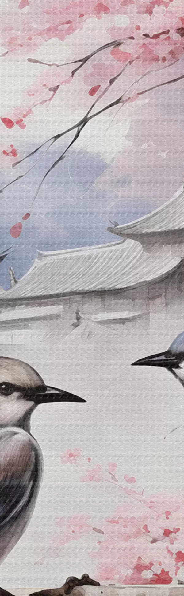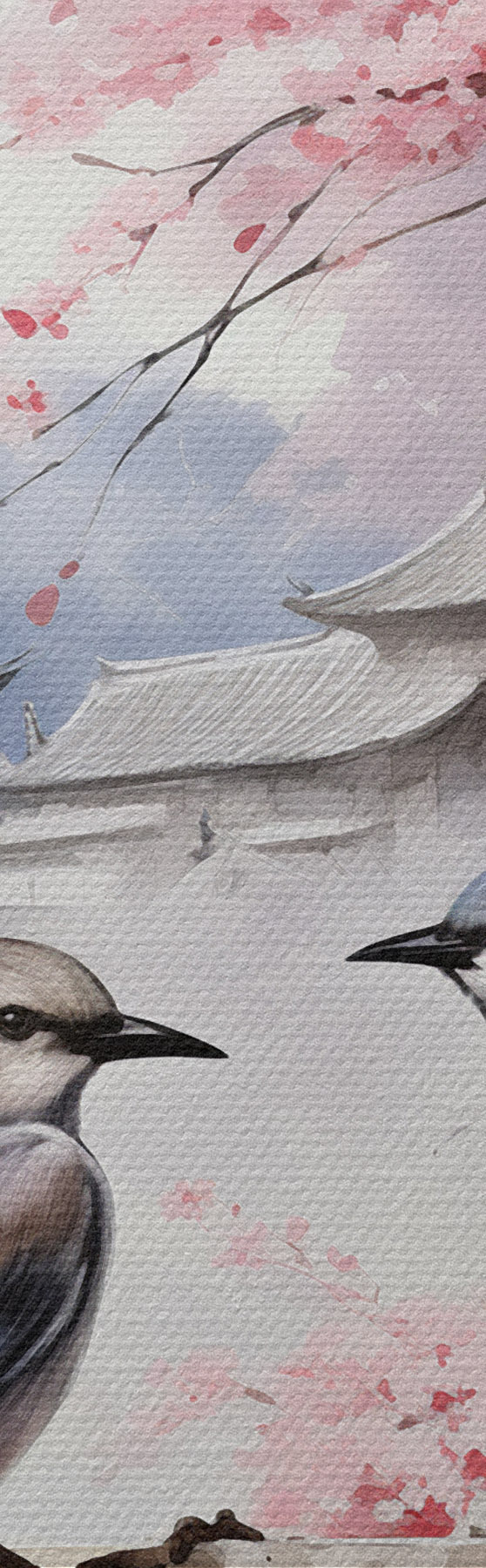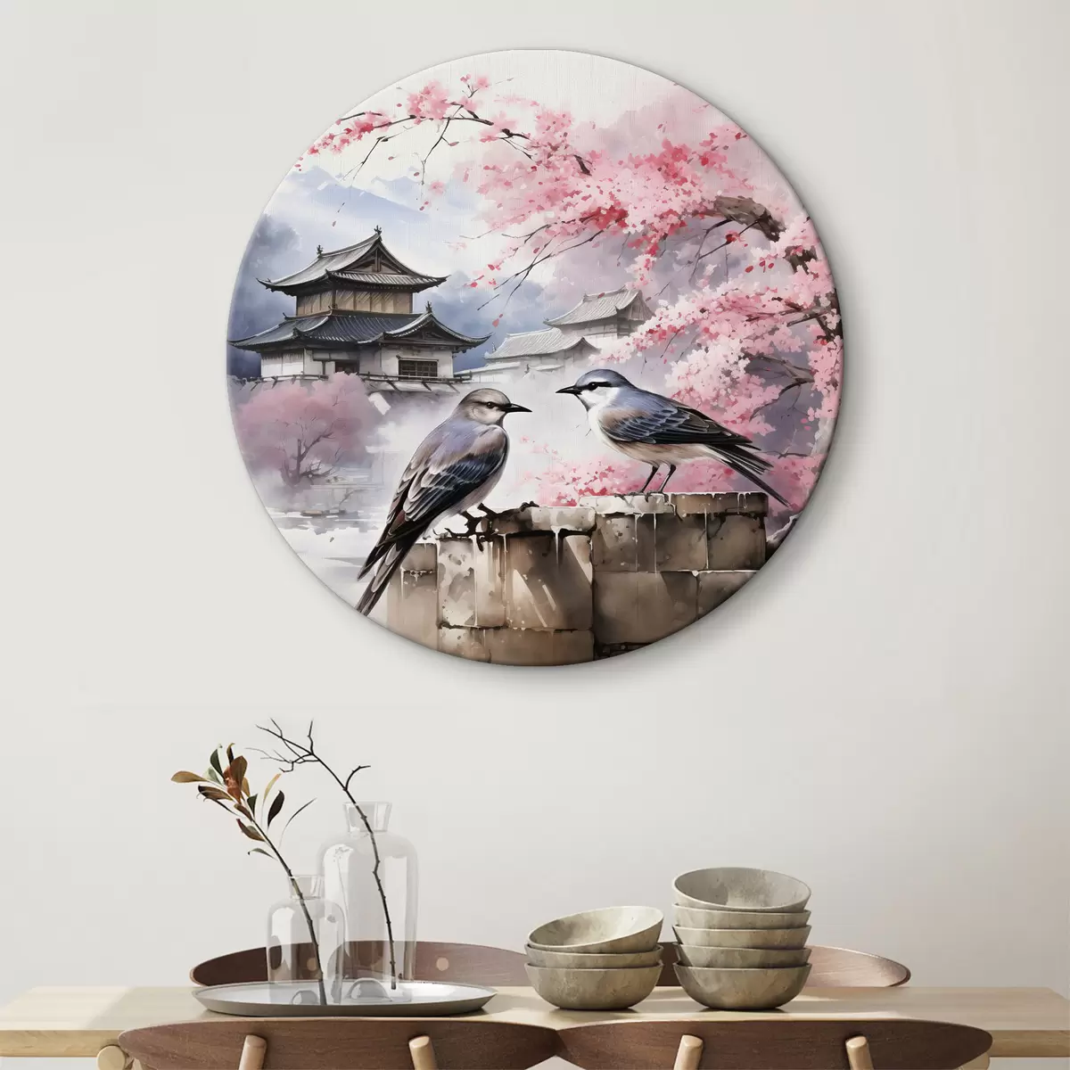 Picturi rotunde Două păsări pe fundalul de sakura în floare Nr r36815