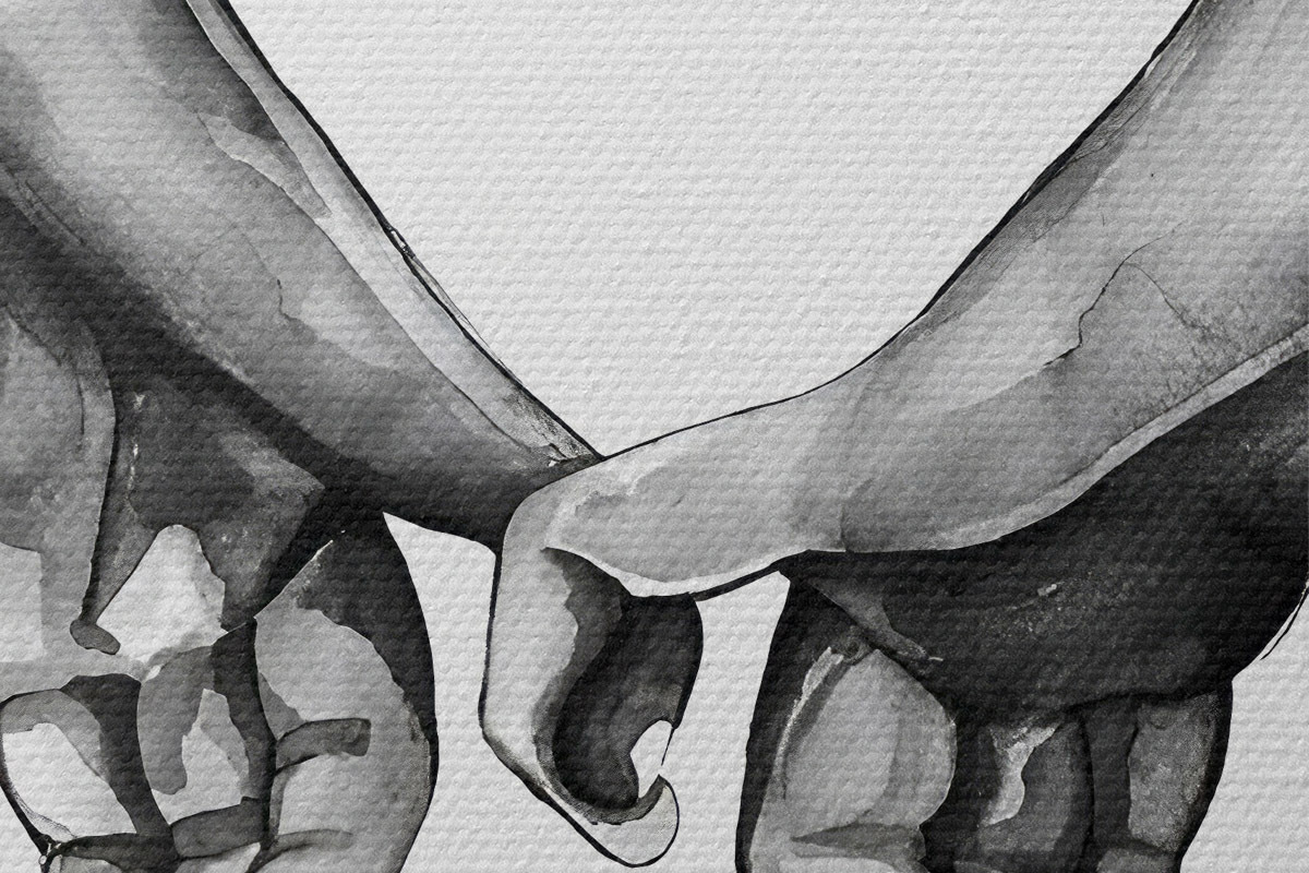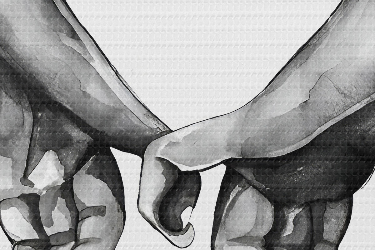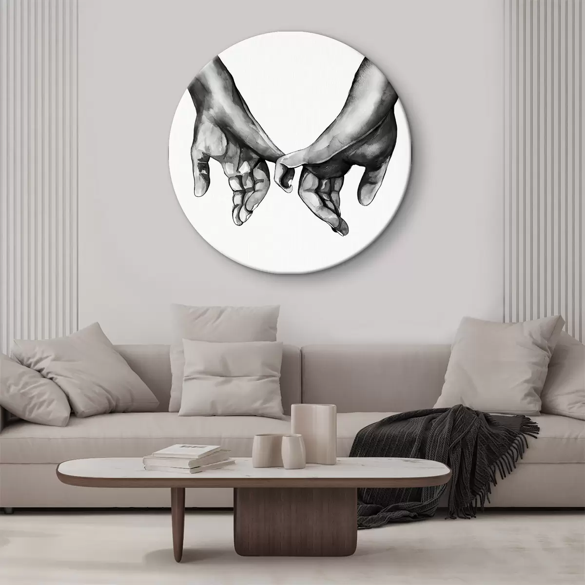 Picturi rotunde Negru și alb ținând mâinile pe un fundal alb Nr r36848