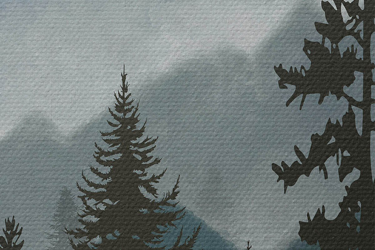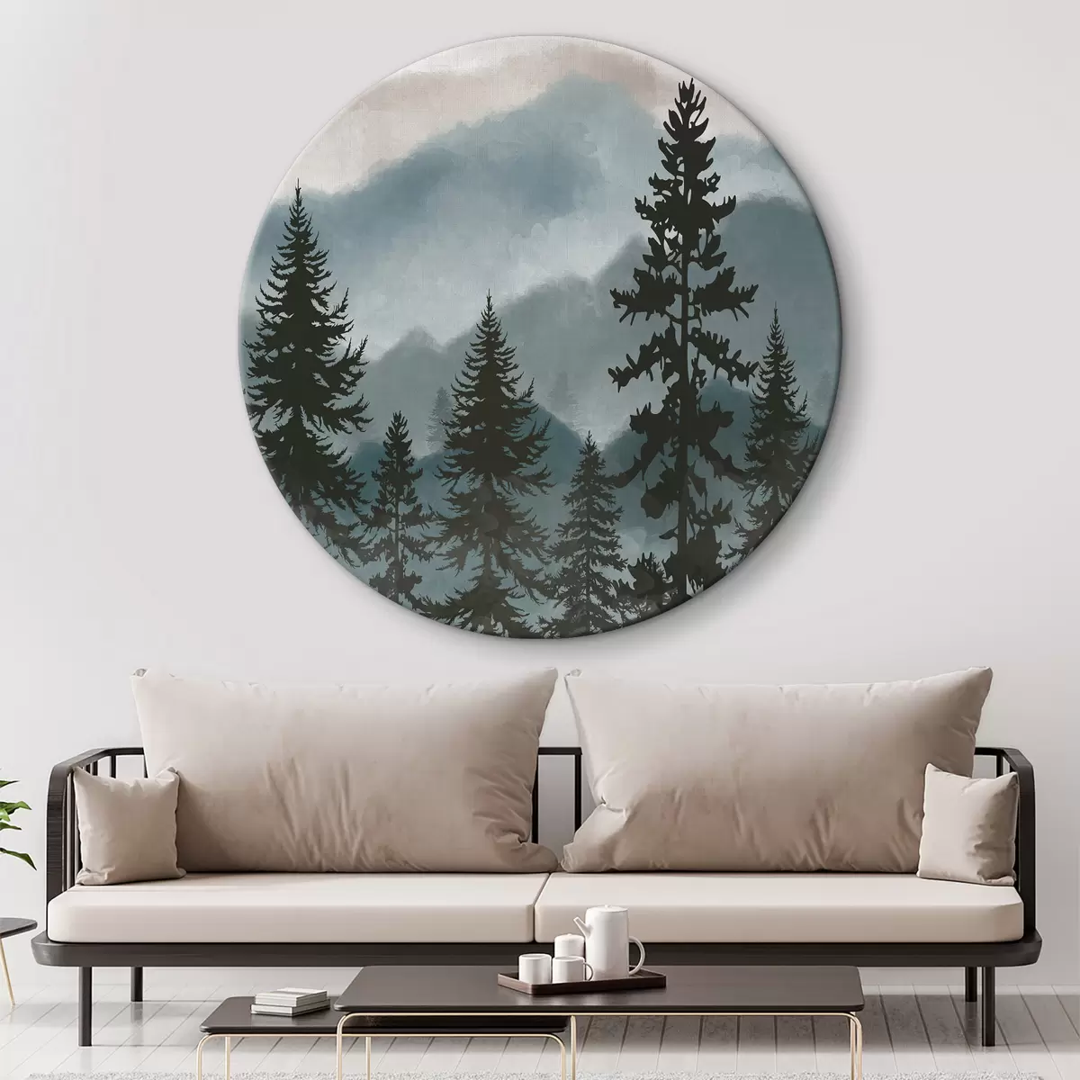 Picturi rotunde Peisaj montan cu brazi în acuarelă r37017