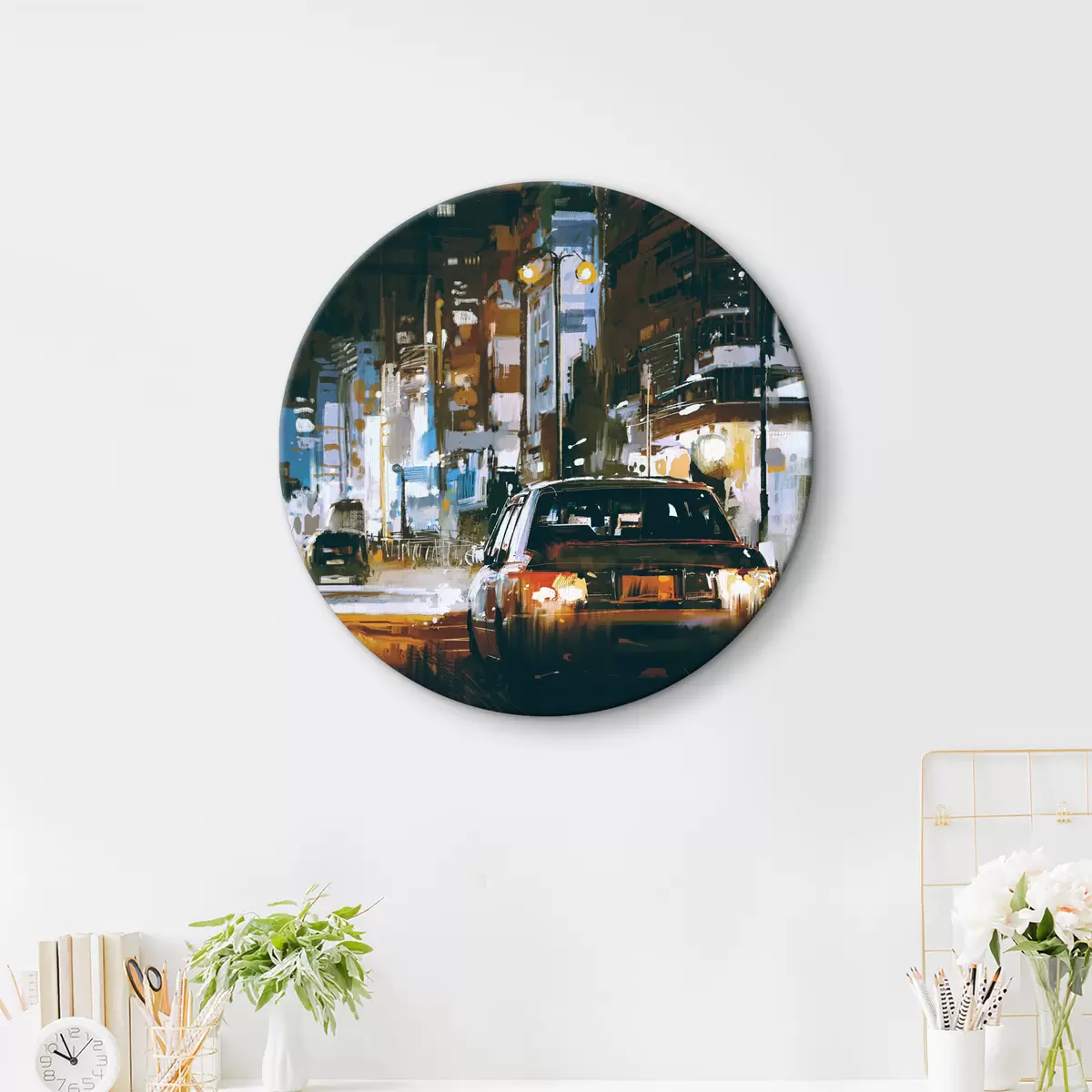 Picturi rotunde Peisaj urban și mașină pe timp de noapte Nr r37085