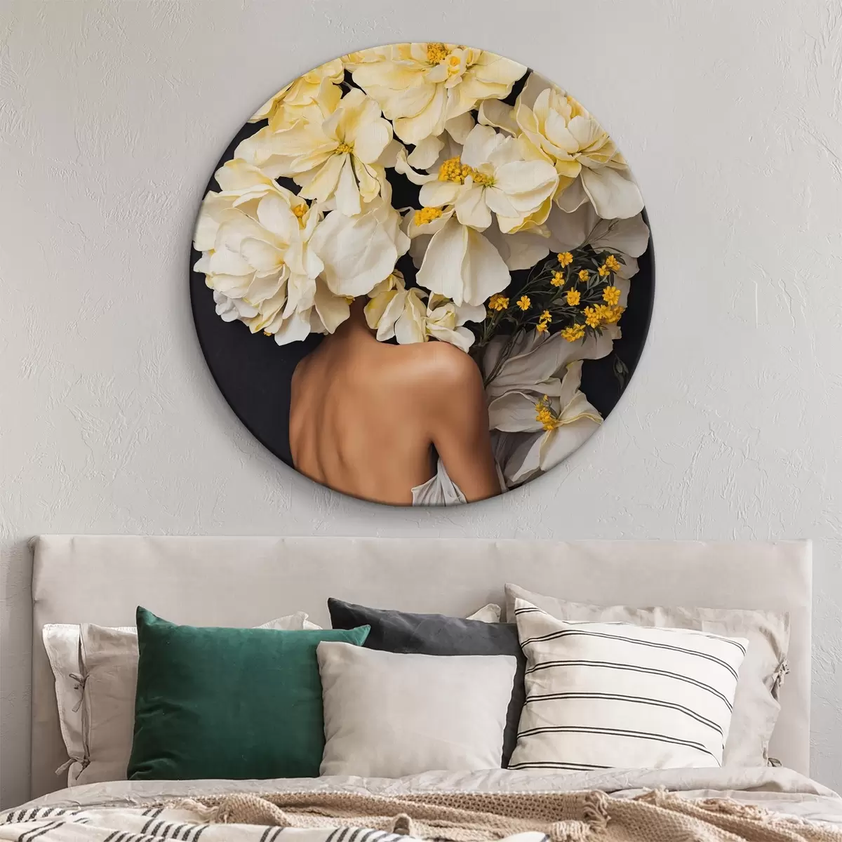 Picturi rotunde Femeie cu flori galbene pe fundal negru r37162