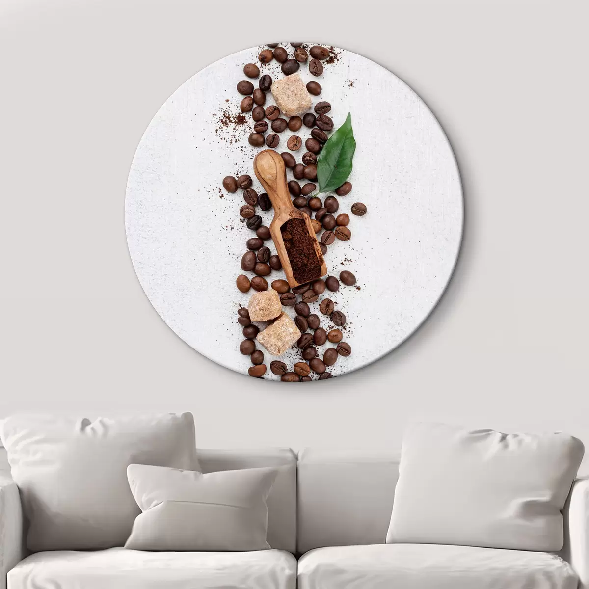 Picturi rotunde O lingură cu boabe de cafea și zahăr deasupra Nr r37178