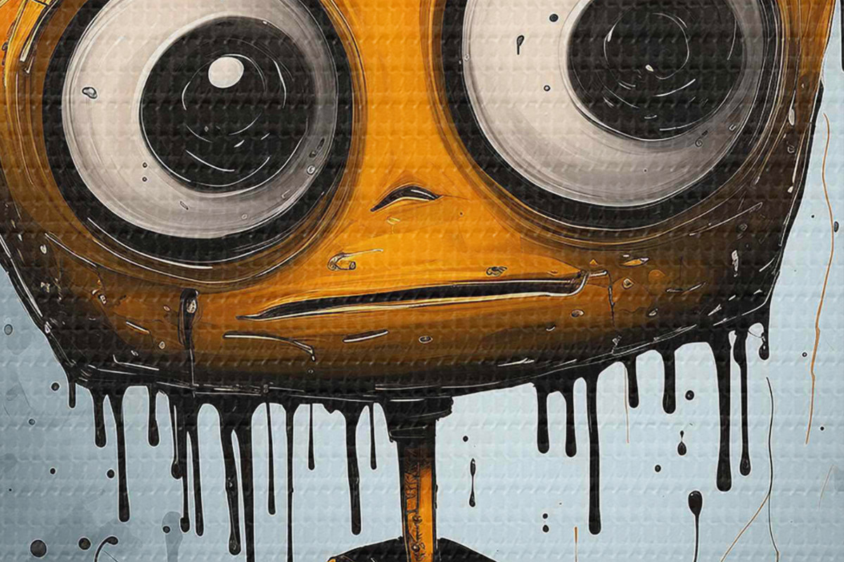 Picturi rotunde Personaj de desene animate cu un cap pătrat și ochi mari r37254