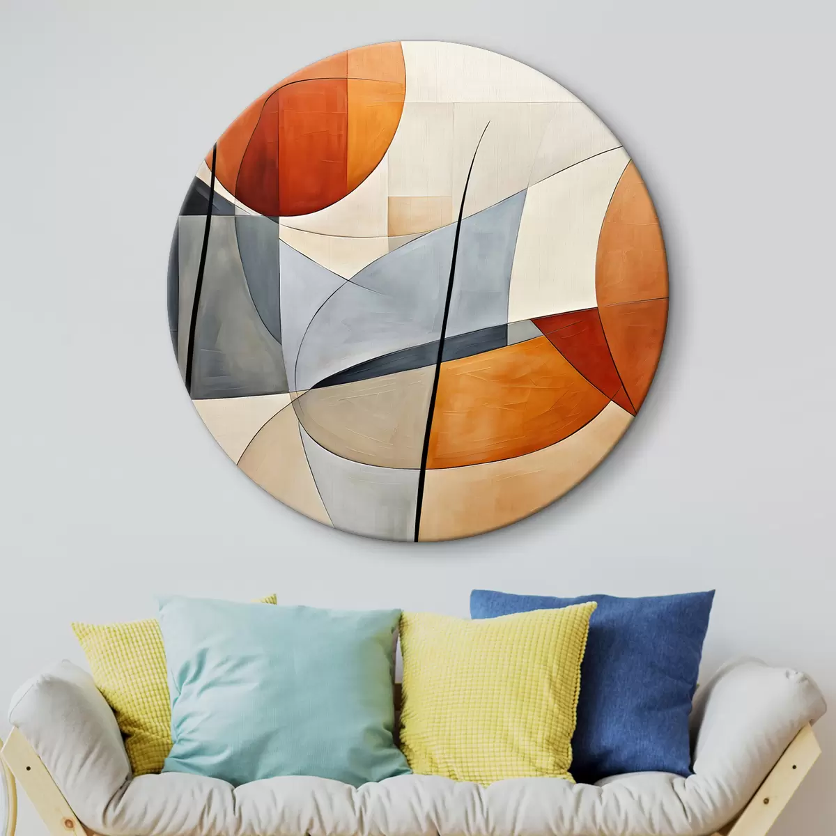Picturi rotunde Abstracție geometrică în nuanțe de portocaliu Nr r37285