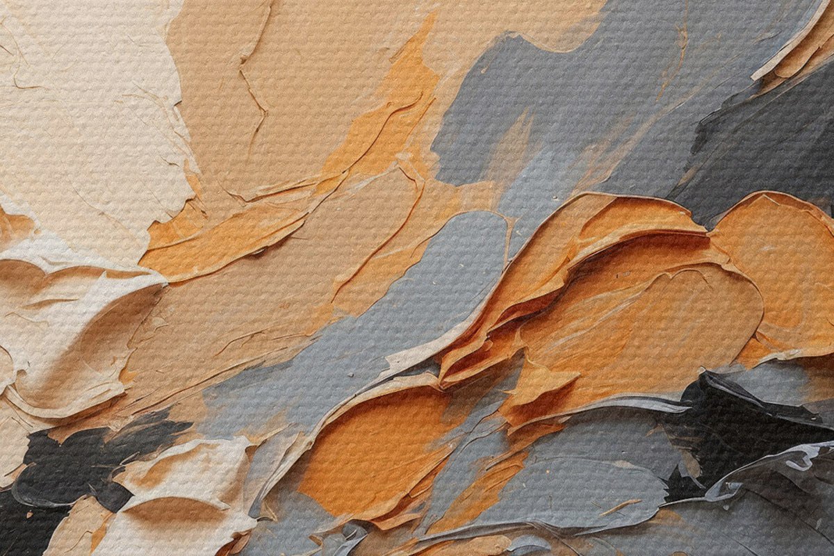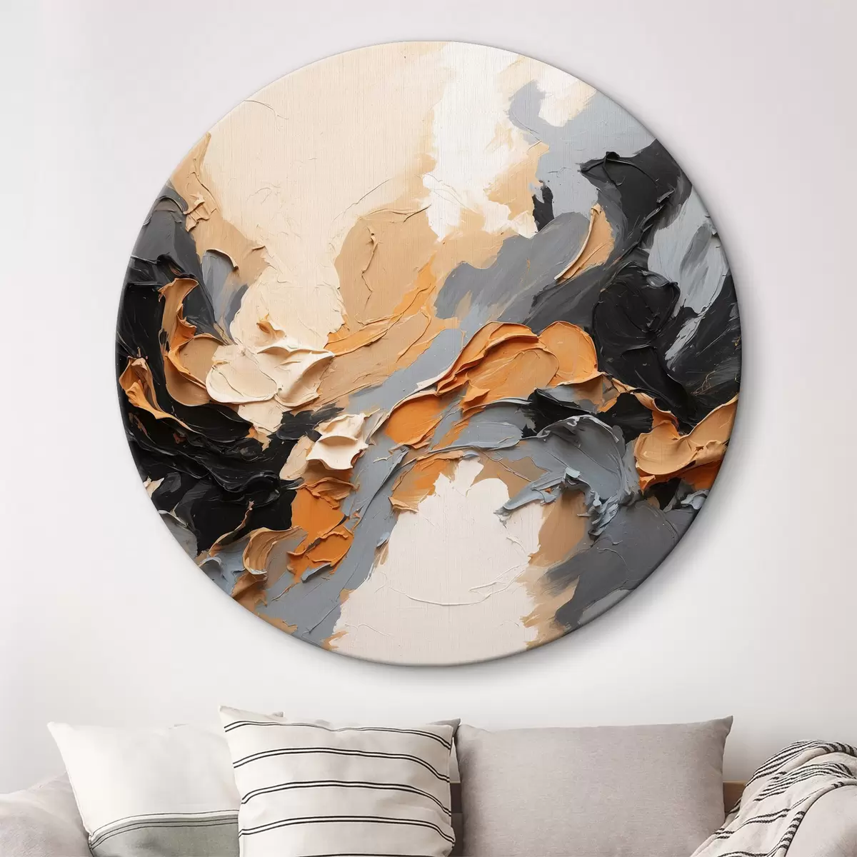 Picturi rotunde Pictură abstractă în ulei cu vopsele negre, albastre și bej r37328