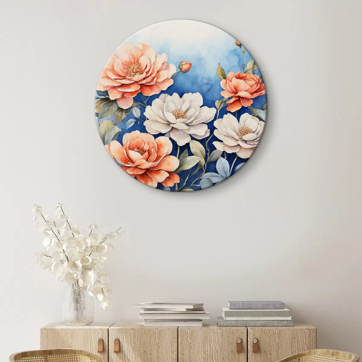Picturi rotunde Imagine de flori pe un fundal albastru Nr r37332