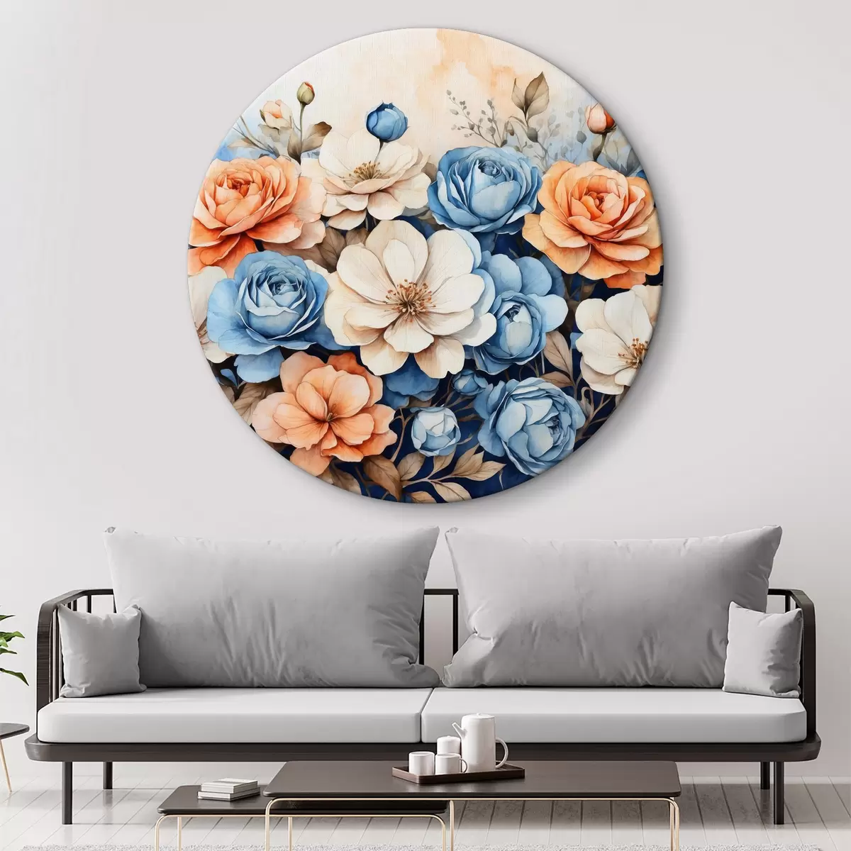Picturi rotunde Imagine de flori pe un fundal albastru Nr r37335