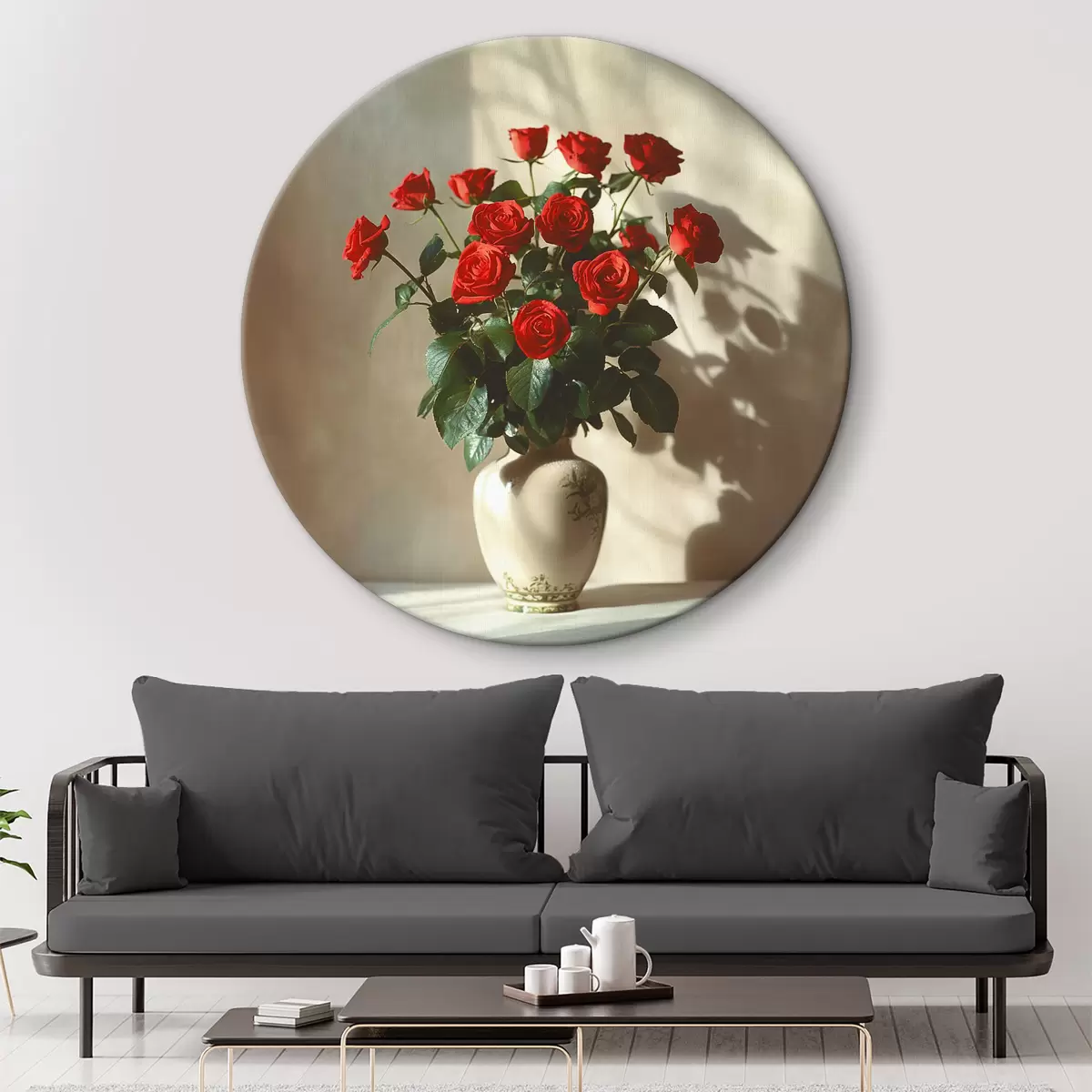 Picturi rotunde Vază cu trandafiri roșii r37378