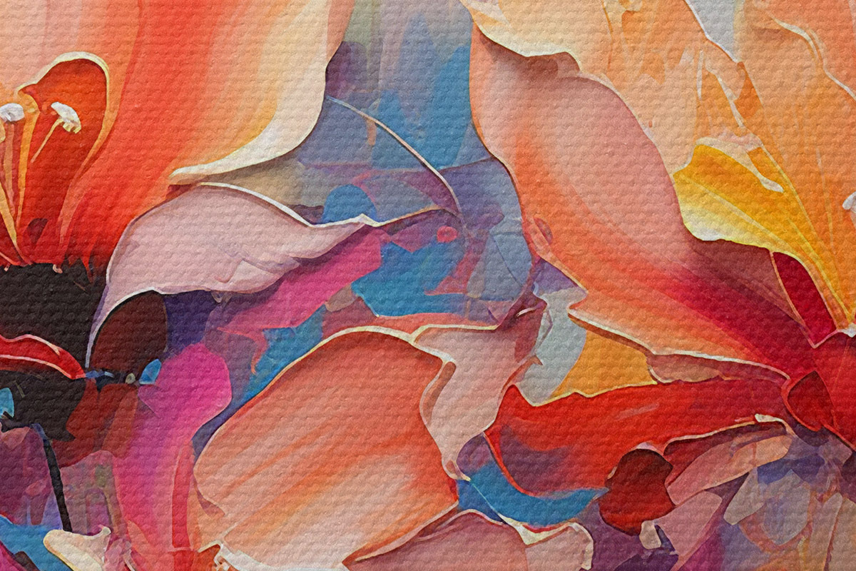 Trei tipuri de materiale sunt disponibile pentru comandă: Economic Canvas - un material dens și durabil pentru imprimarea digitală, identic cu pânza de pictor, suprafață impermeabilă, reproducere realistă a detaliilor, material cu granulație medie. Premium Canvas - textura seamănă cu cea a pânzei unui pictor (fire mici împletite). Reproducere moale, detaliată a imaginii pe o suprafață mată. Eco-Premium - țesătură 100% bumbac de înaltă calitate. Datorită fibrelor naturale de bumbac, materialul este durabil și rezistent la uzură. Reproducere excelentă a culorilor și a detaliilor.