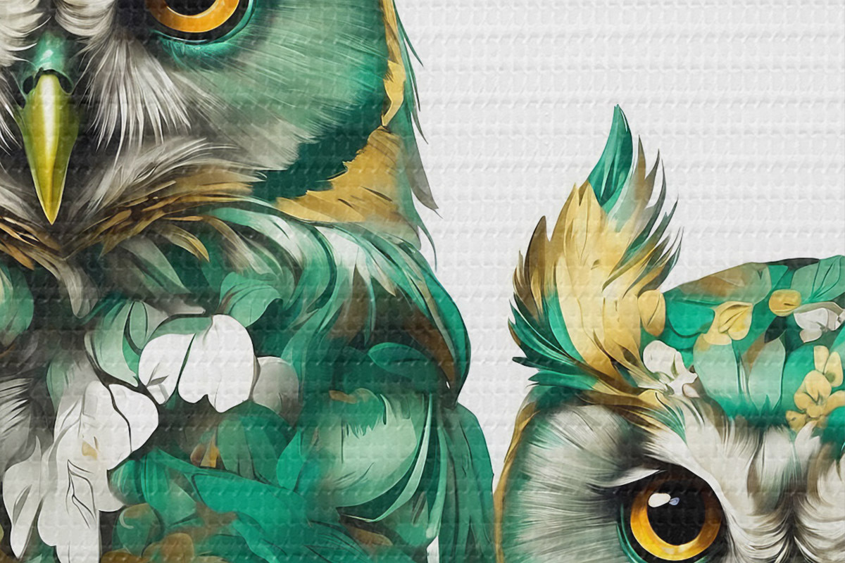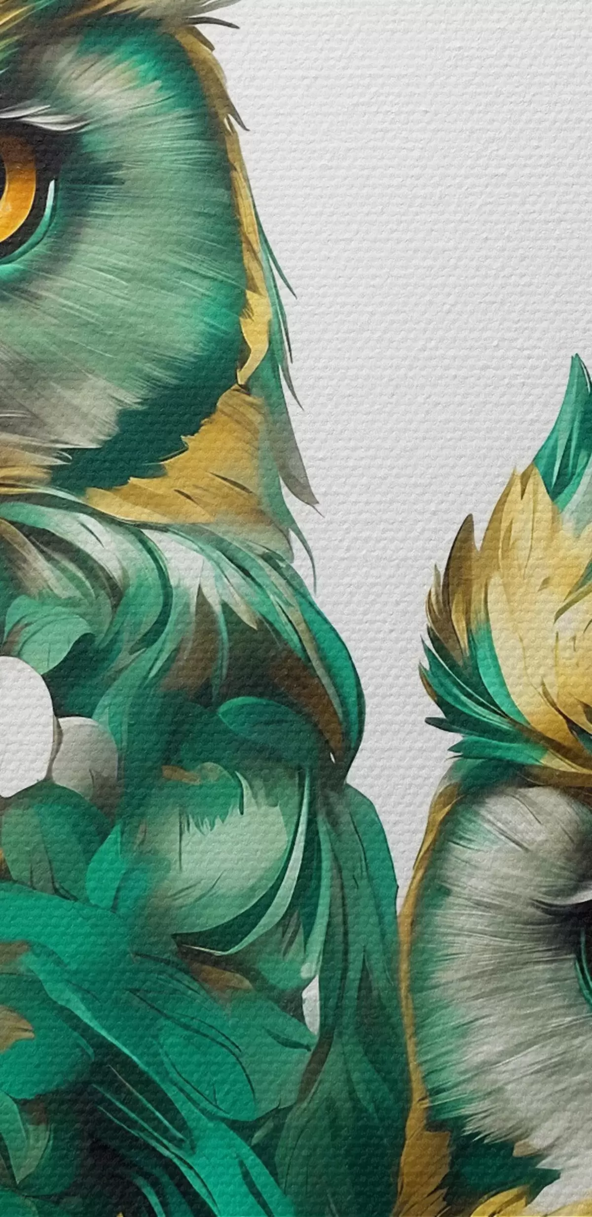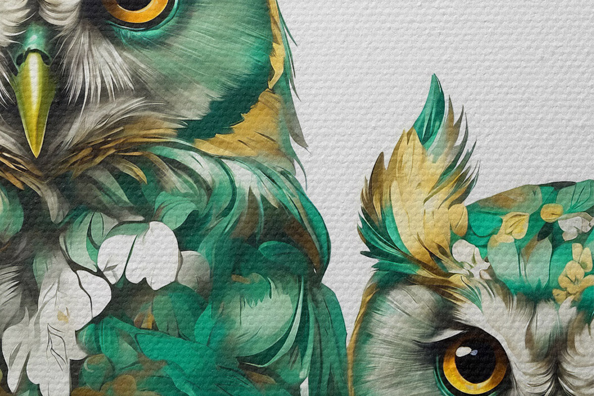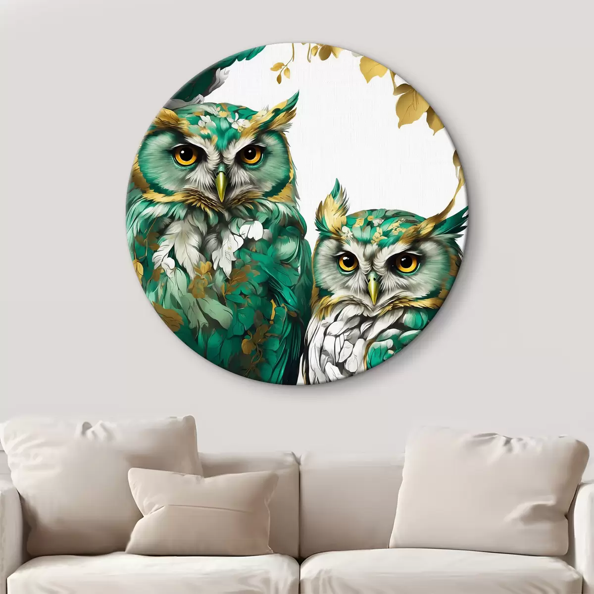 Picturi rotunde Două bufnițe verzi în frunze Nr r37569