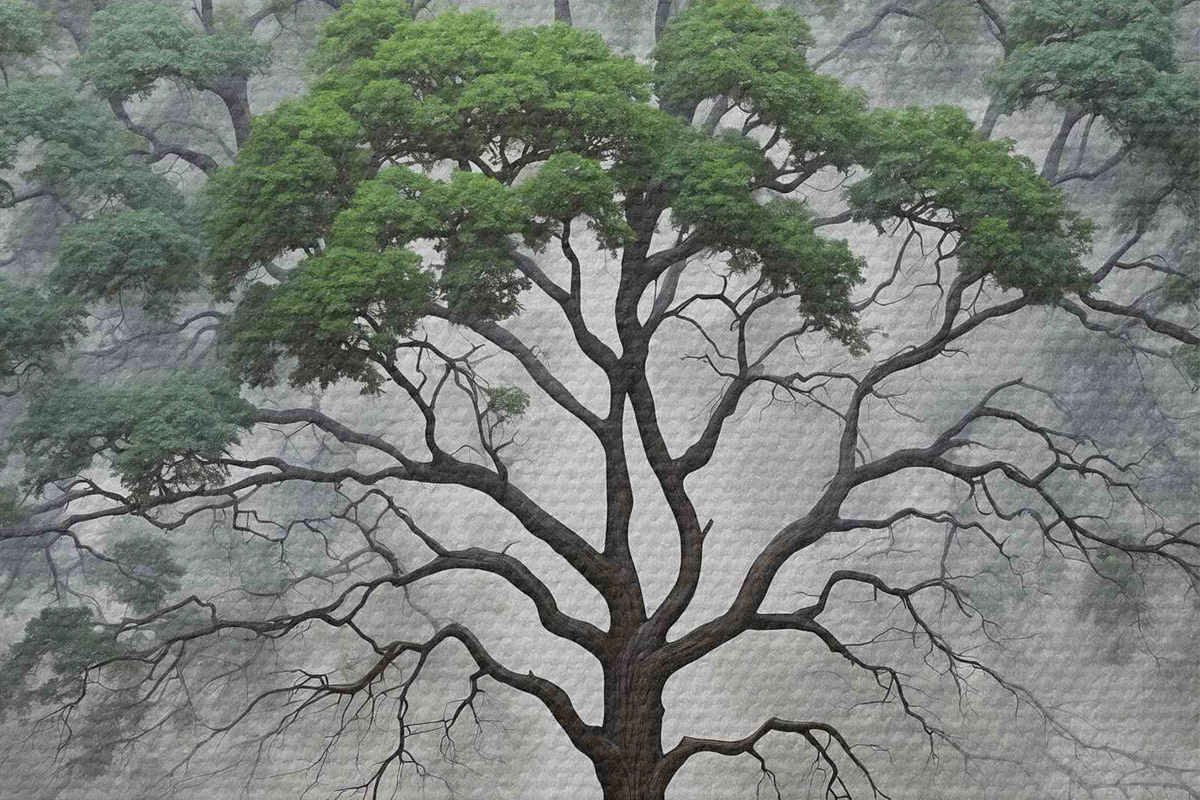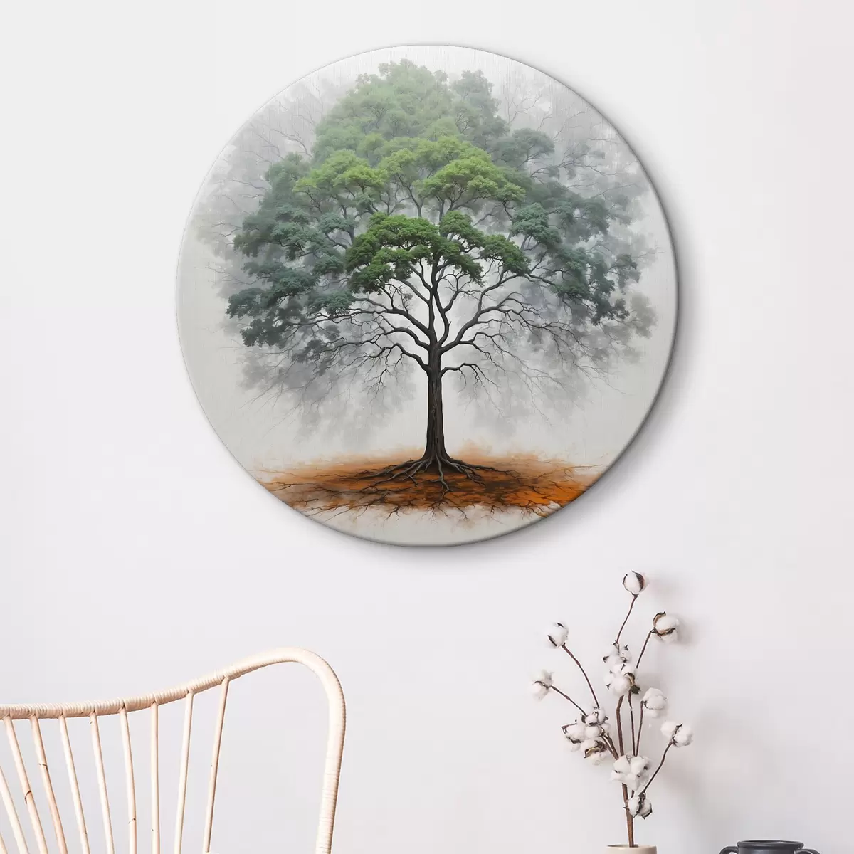 Picturi rotunde Un copac maiestuos în ceață Nr r37577