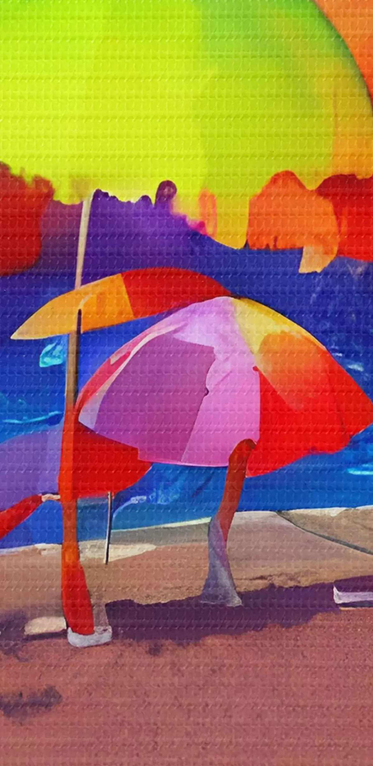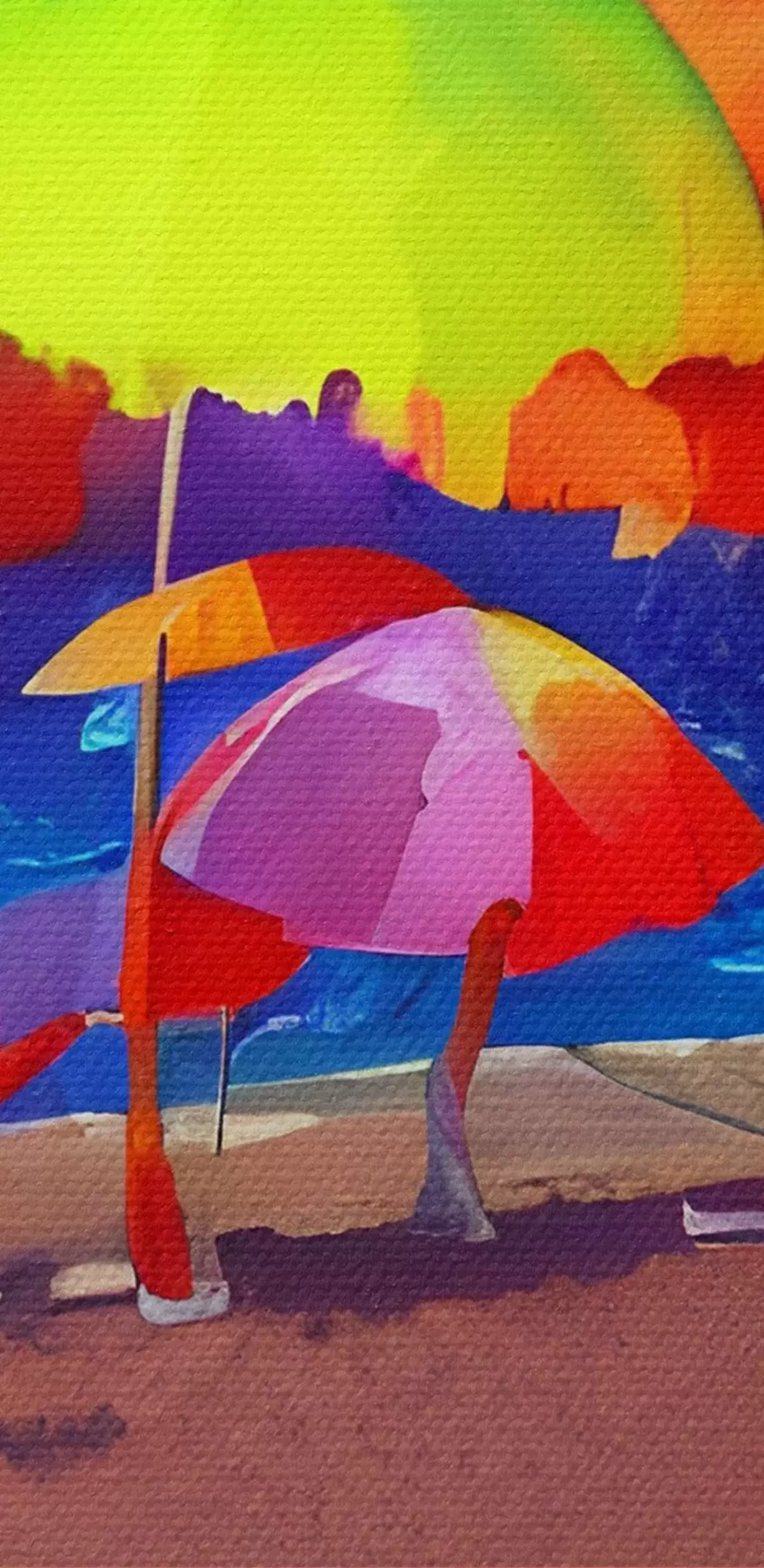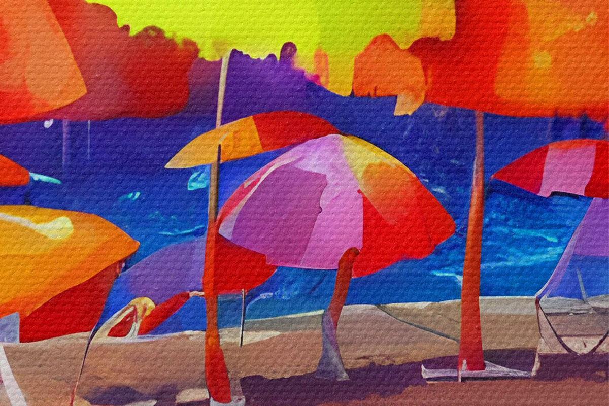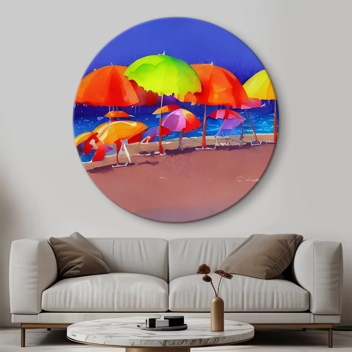 Picturi rotunde Grup de umbrele colorate pe plajă Nr r37626