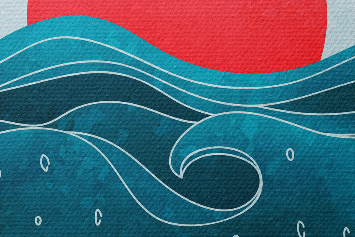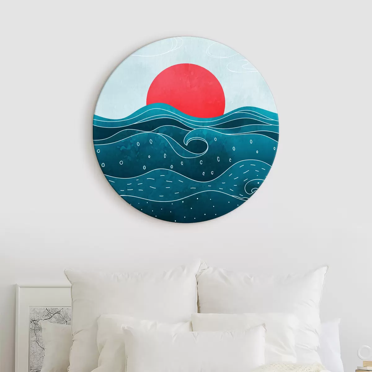 Picturi rotunde Apă cu valuri și soare roșu Nr r37640