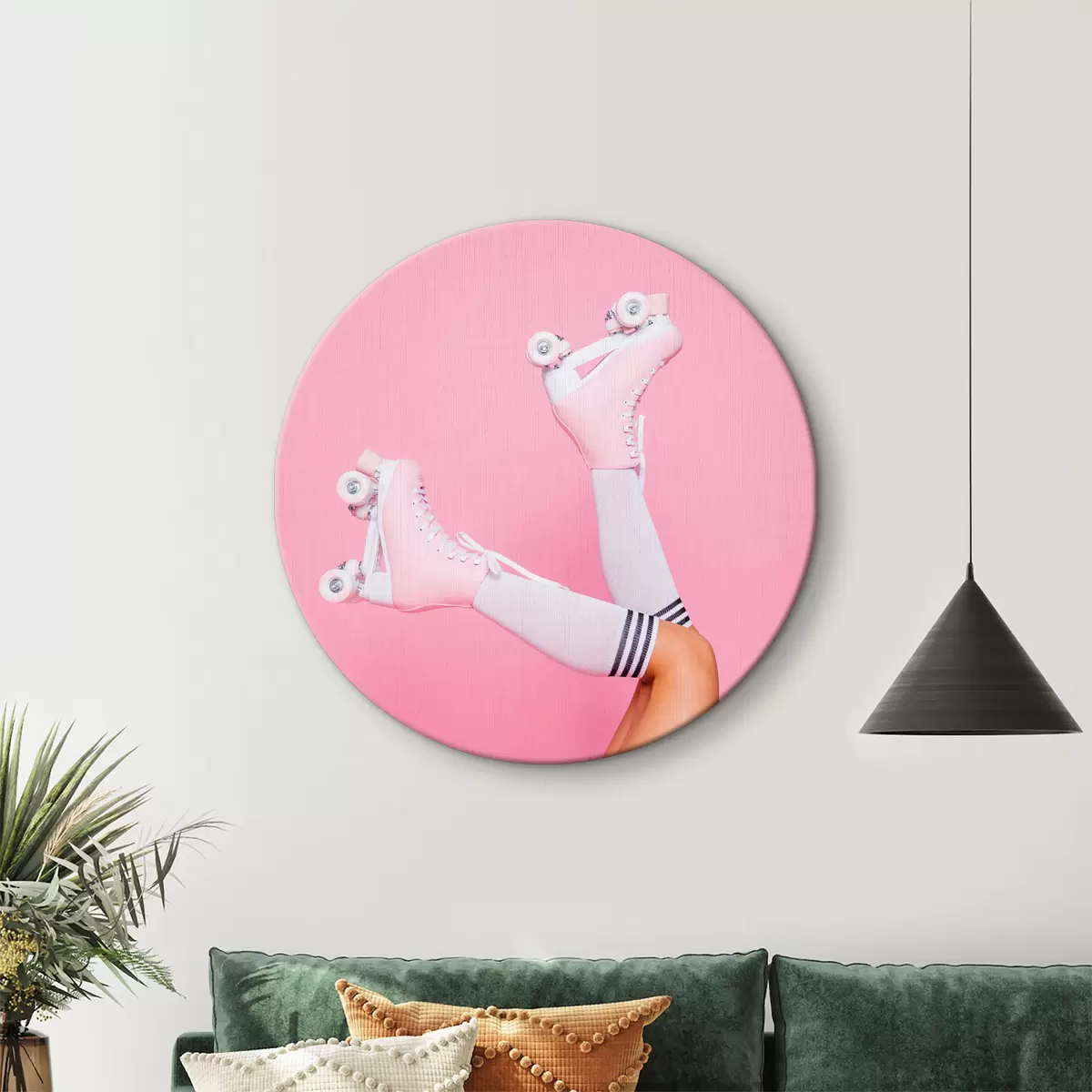 Picturi rotunde Patine cu rotile pe un fundal roz Nr r37763