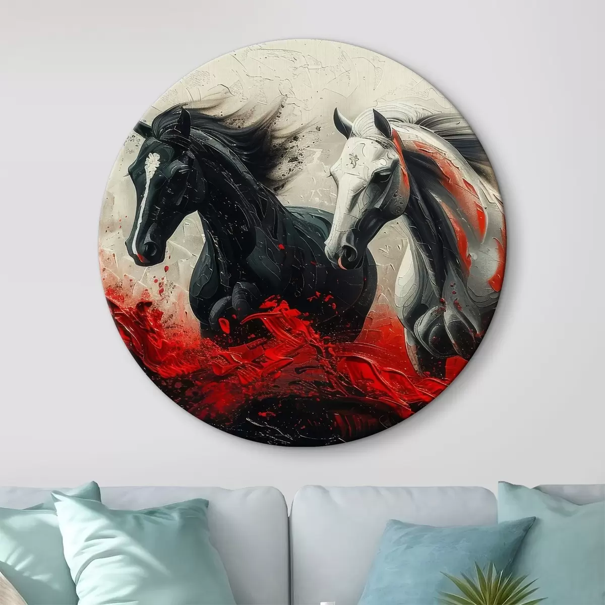 Picturi rotunde Imagine de cai care rulează cu vopsea roșie Nr r37769