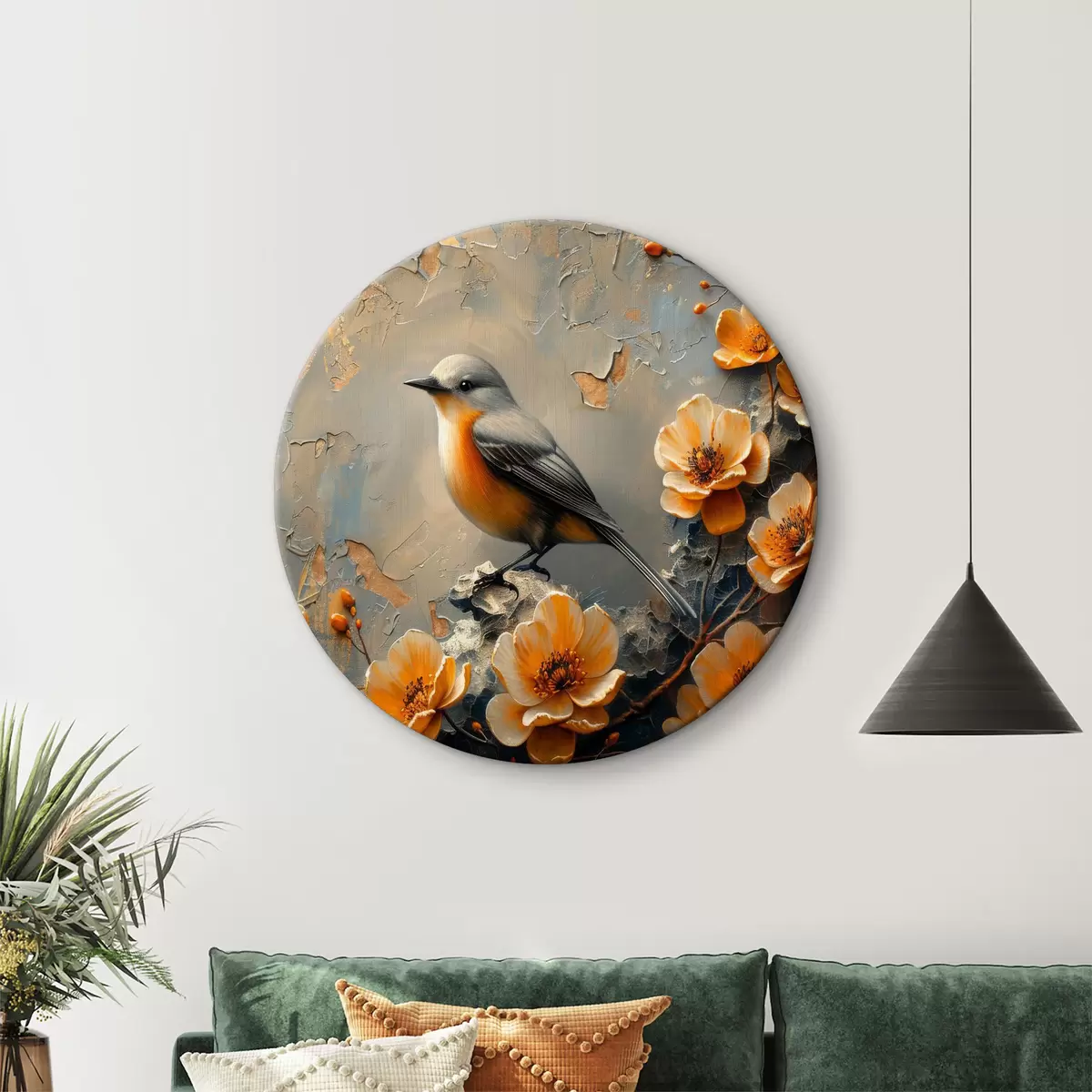 Picturi rotunde Pasăre pe o ramură cu flori r37770