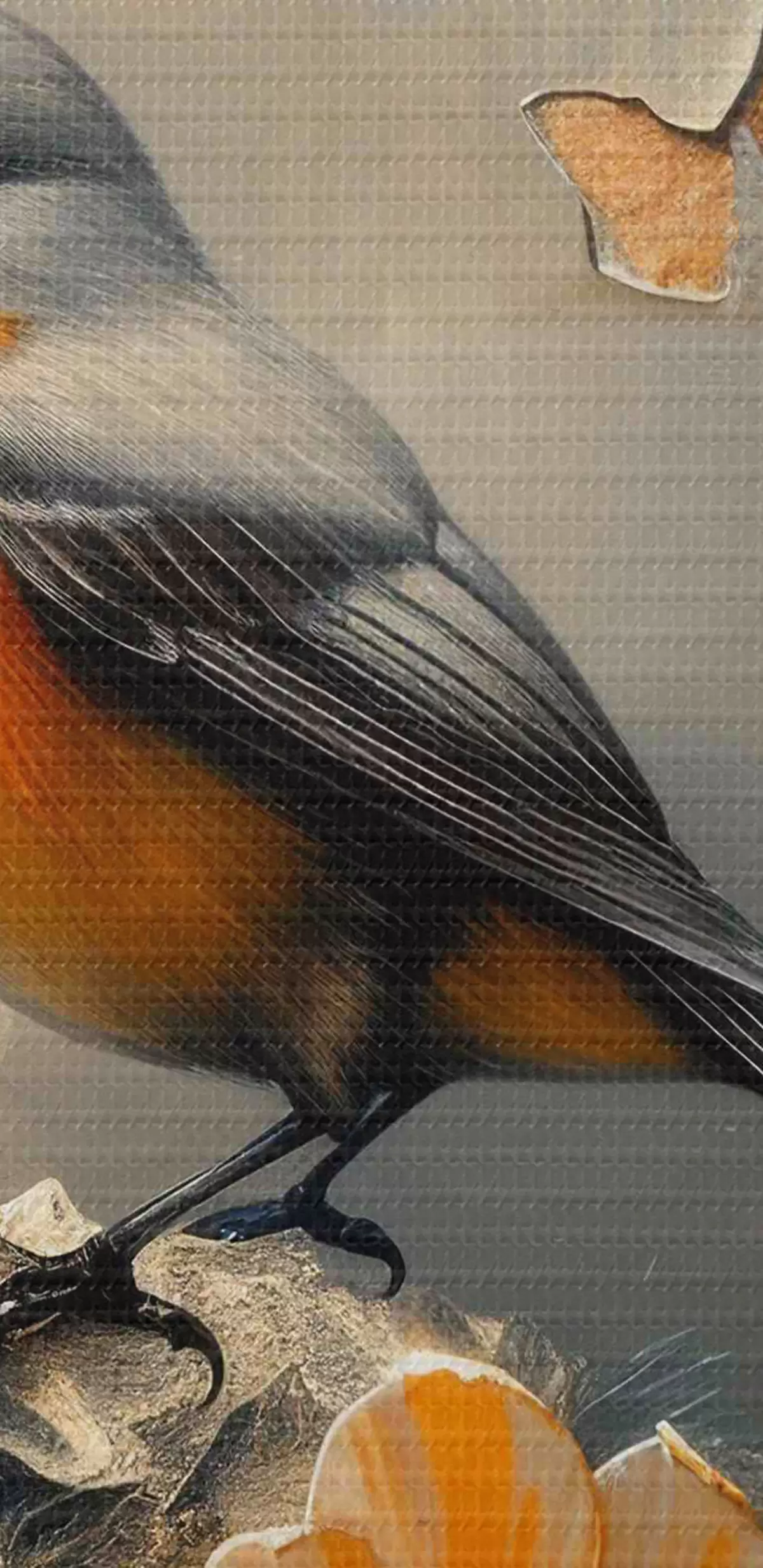 Picturi rotunde Pasăre pe o ramură cu flori Nr r37770
