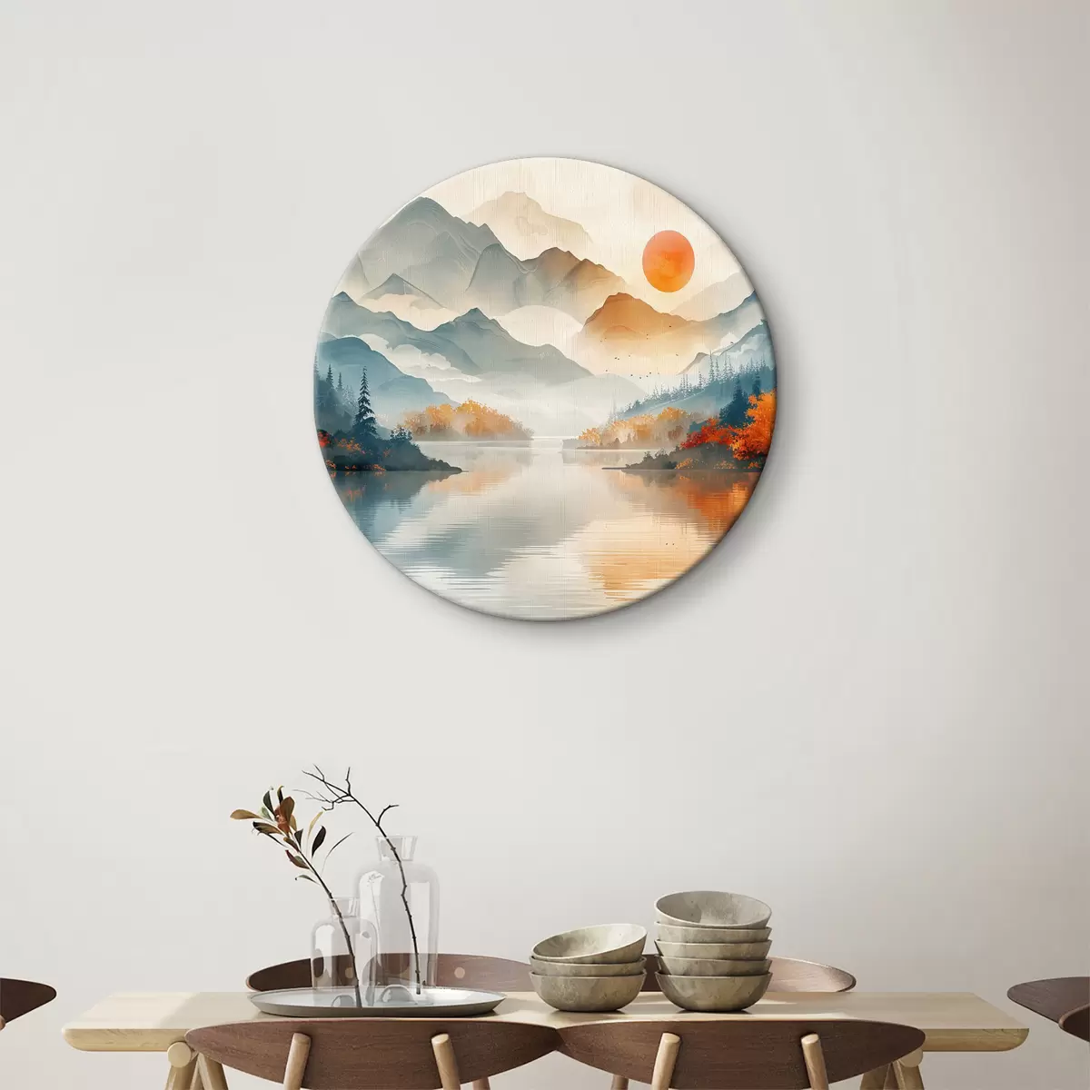 Picturi rotunde Peisaj cu munți și apă Nr r37780