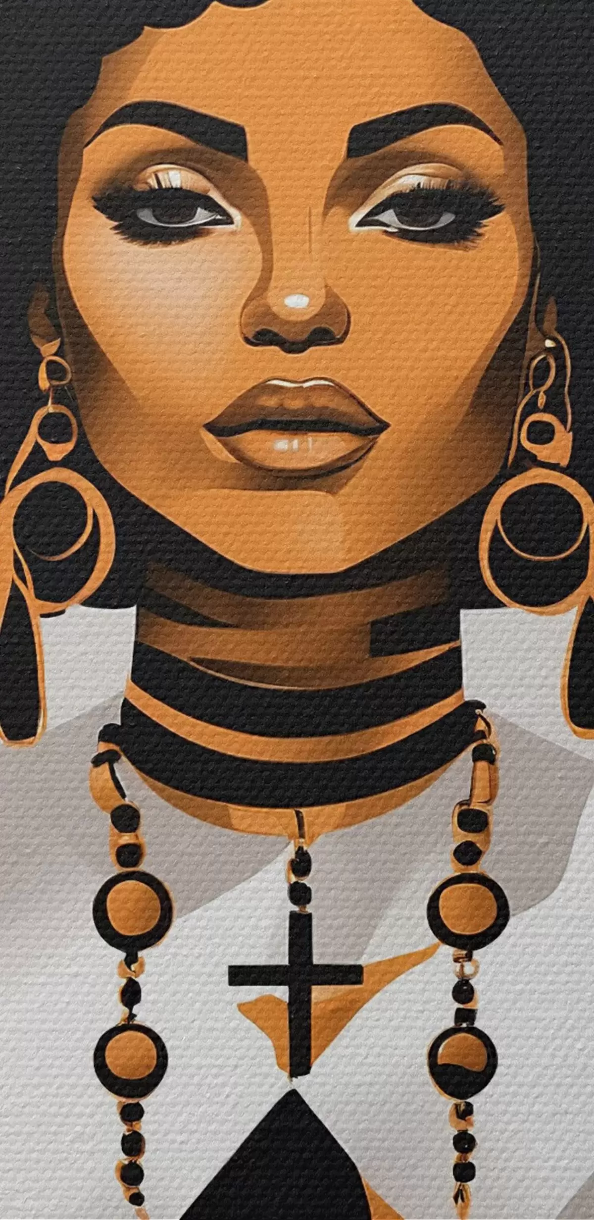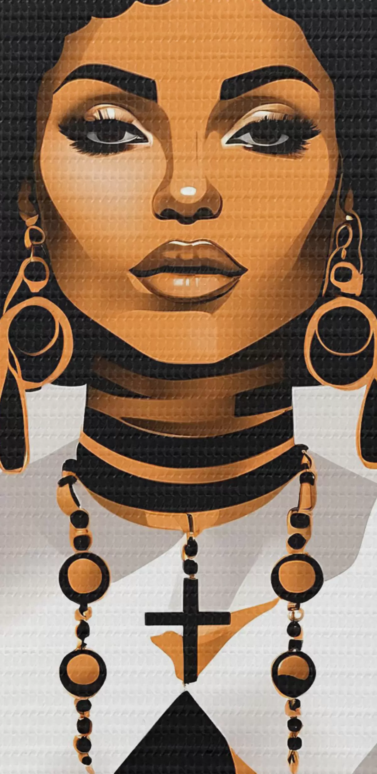 Picturi rotunde O femeie cu un afro mare într-un tricou alb și cercei Nr r37793