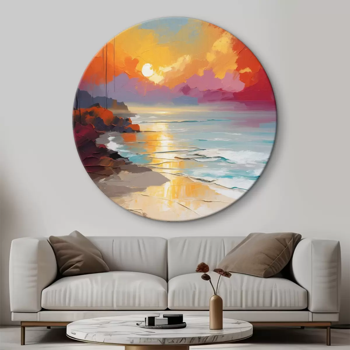 Picturi rotunde Zori de mare în ulei Nr r37800