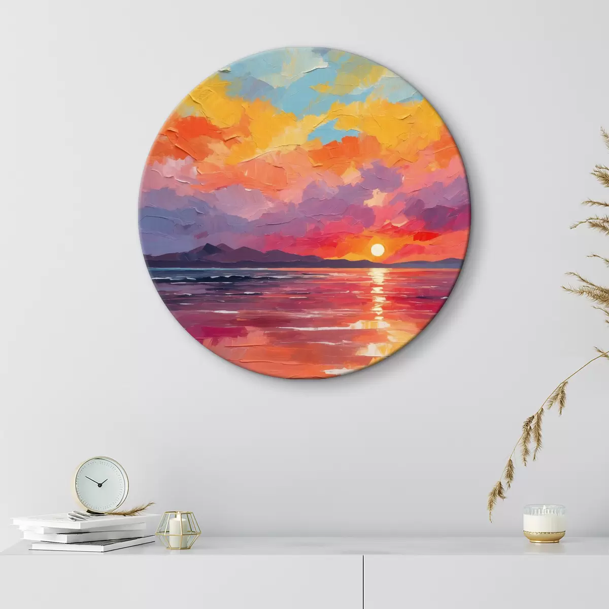 Picturi rotunde Apus de soare pe mare cu acrilice Nr r37807