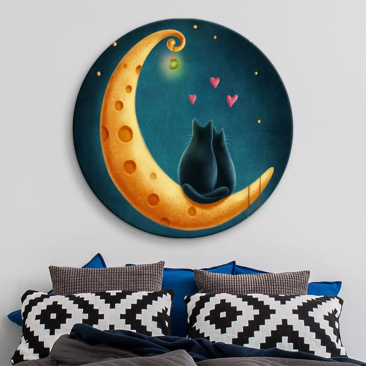 Picturi rotunde Pisici îndrăgostite sub clar de lună Nr r37836