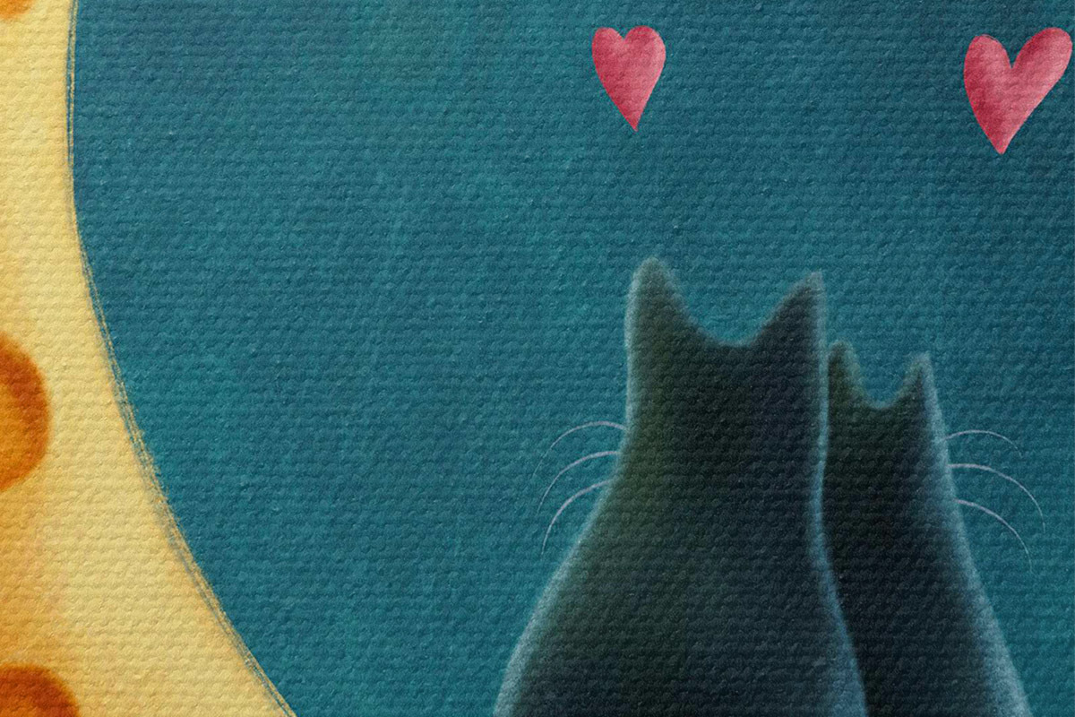 Picturi rotunde Pisici îndrăgostite sub clar de lună r37836