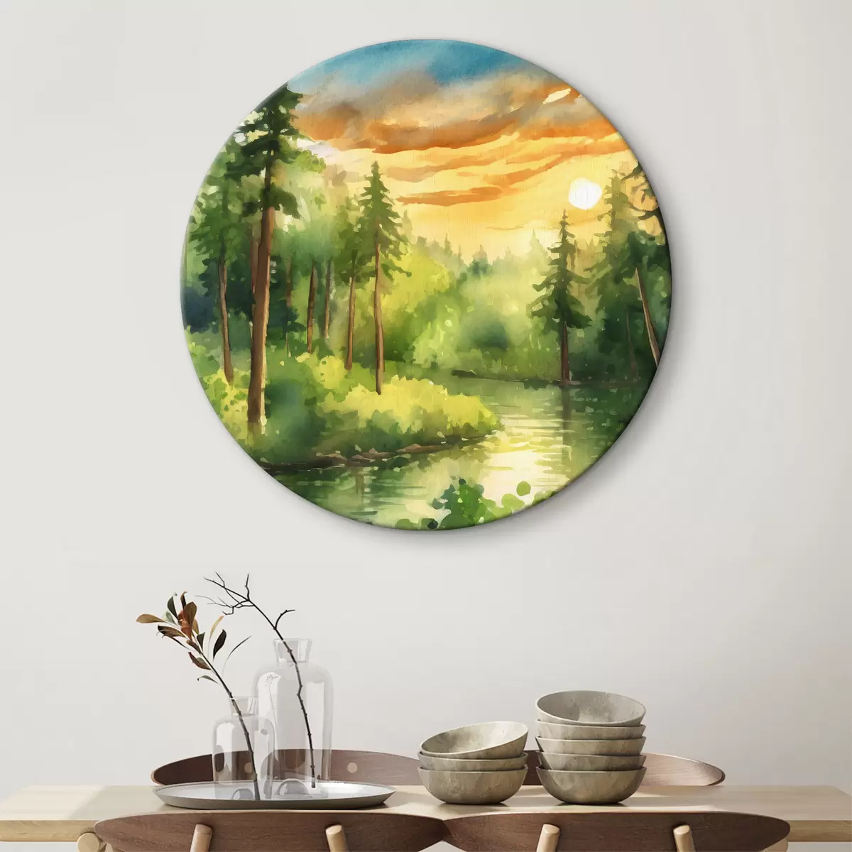 Picturi rotunde Pădure liniștită lângă un râu liniștit Nr r37950