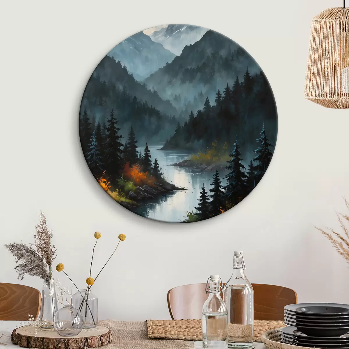 Picturi rotunde Un râu care curge printr-o vale de munte Nr r38096