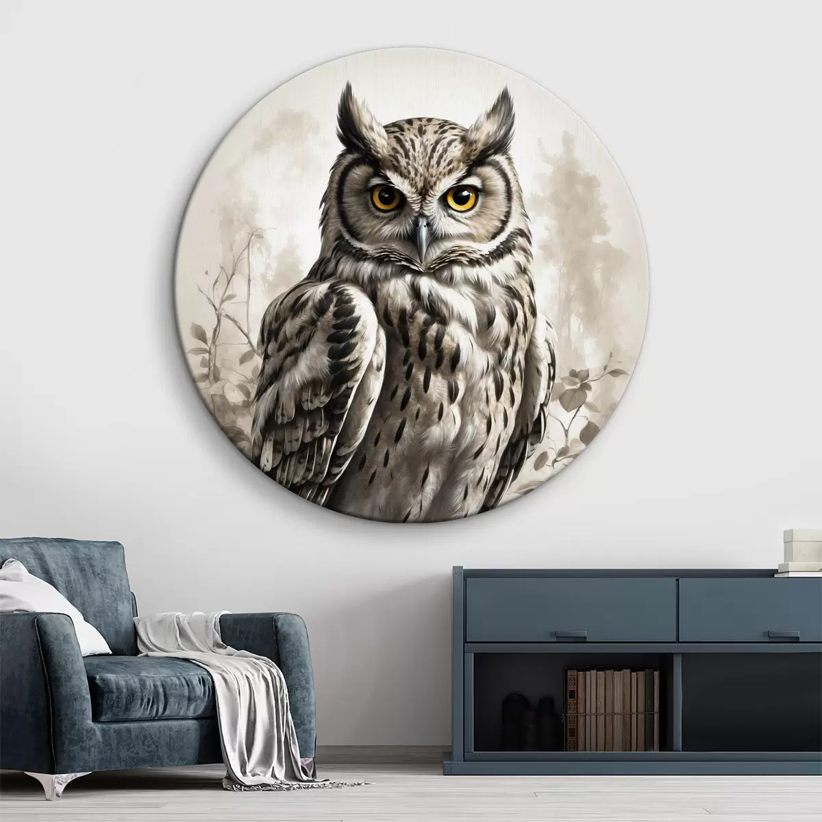 Picturi rotunde Bufniță pe fundal negru și alb Nr r38118