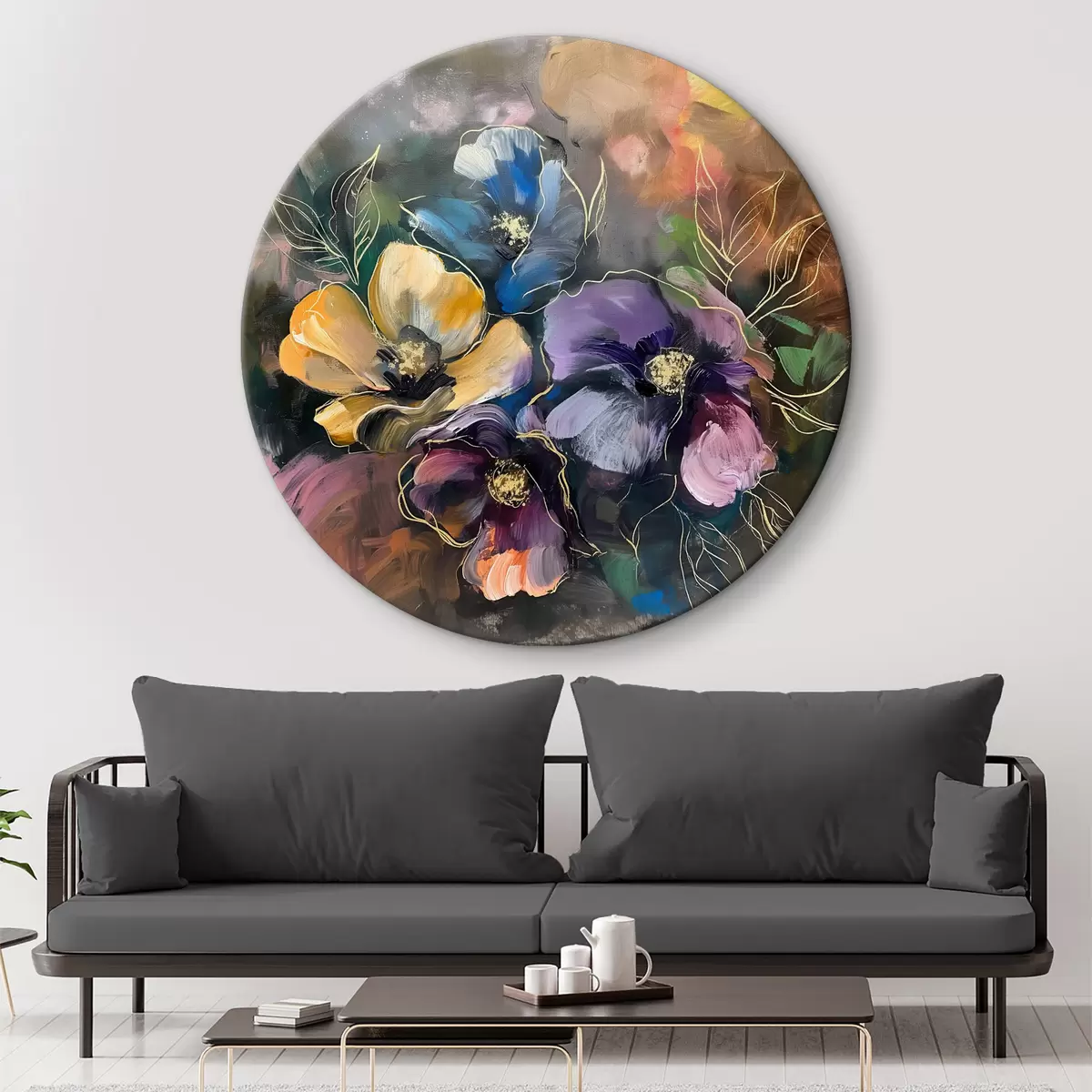 Picturi rotunde Flori abstracte pictate cu tușe de pensulă Nr r38131